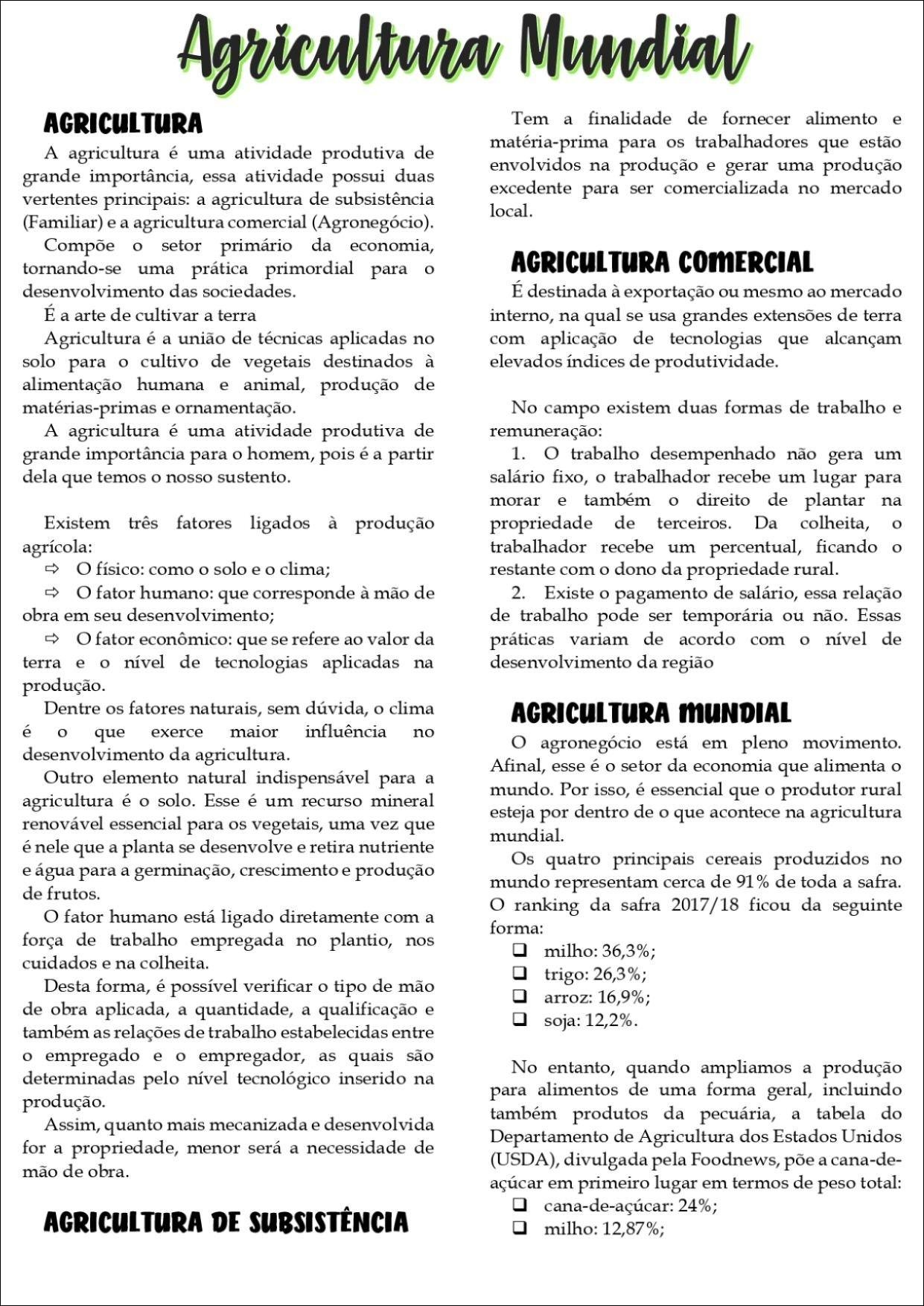 Compilação com os melhores mapas mentais, conceituais, infográficos, diagramas e resumos sobre agricultura.