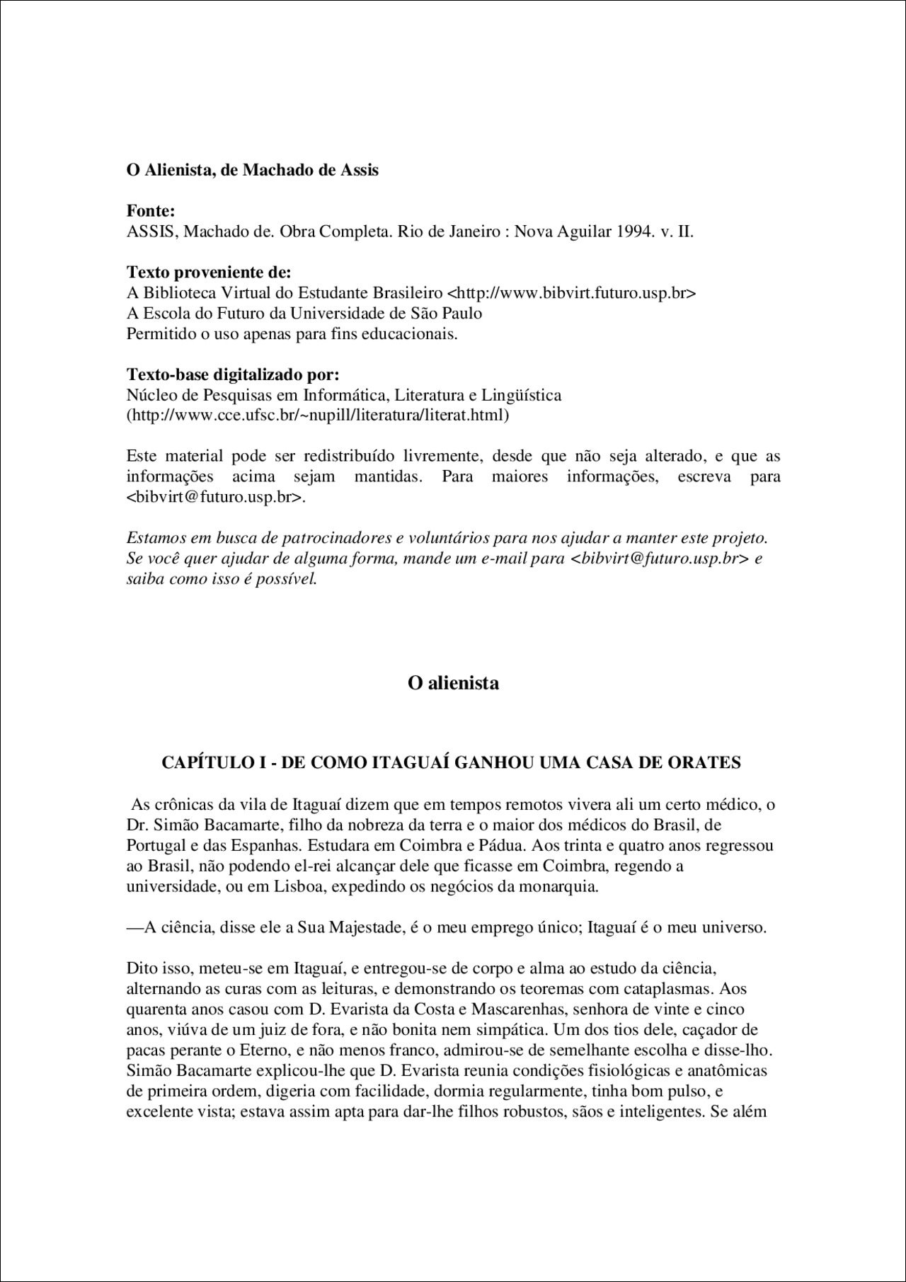 Resumo sobre alienista