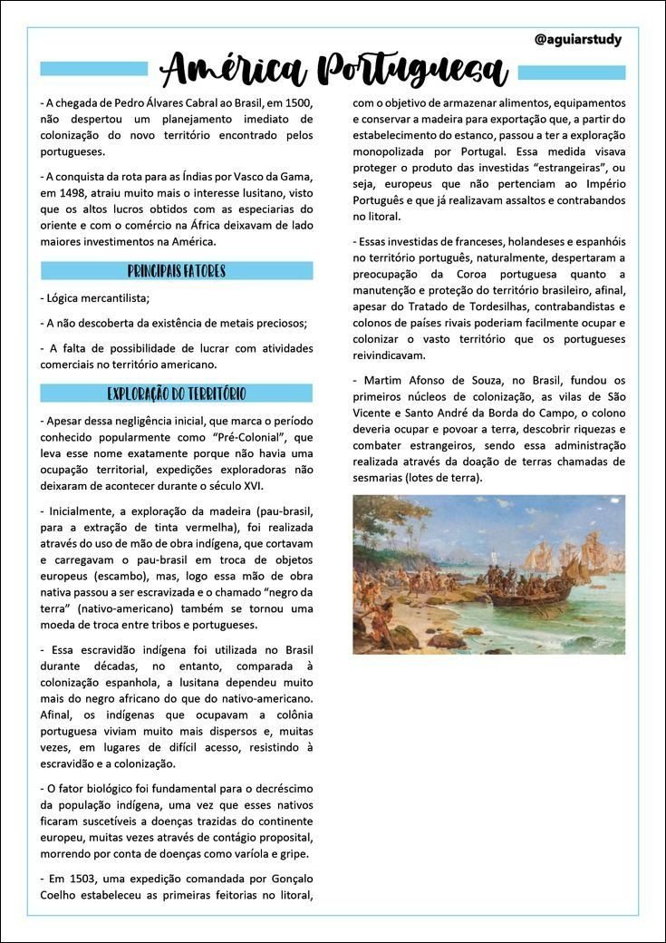 Compilação com os melhores mapas mentais, conceituais, infográficos, diagramas e resumos sobre América Portuguesa.