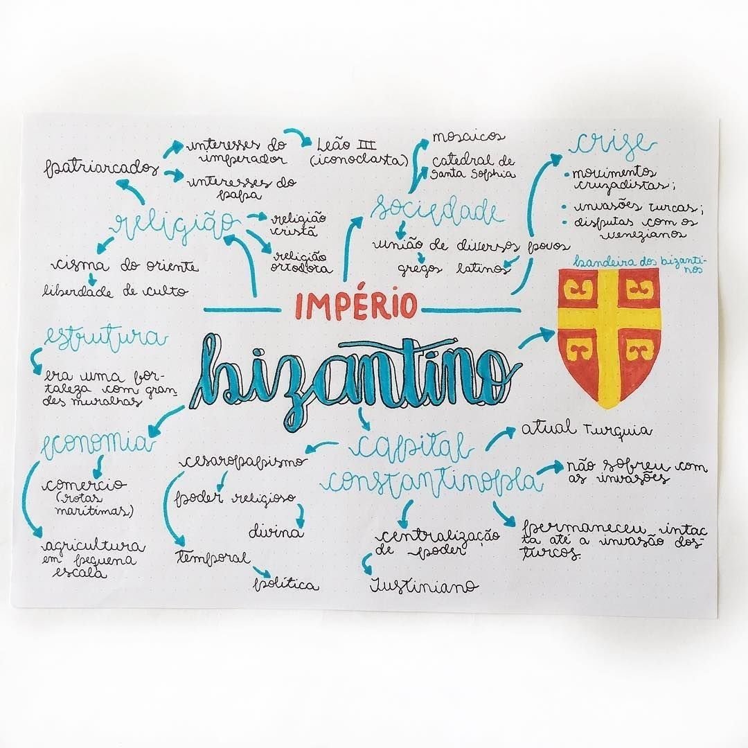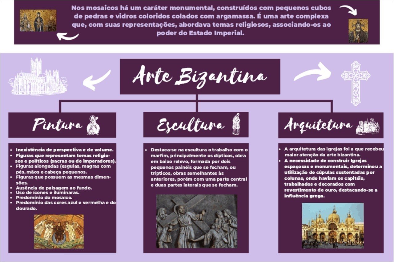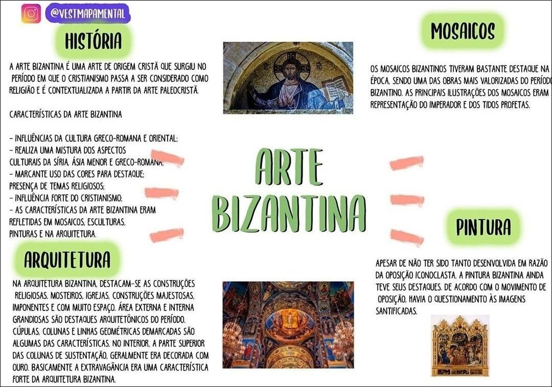 Compilação com os melhores mapas mentais, conceituais, infográficos, diagramas e resumos sobre arte bizantina.