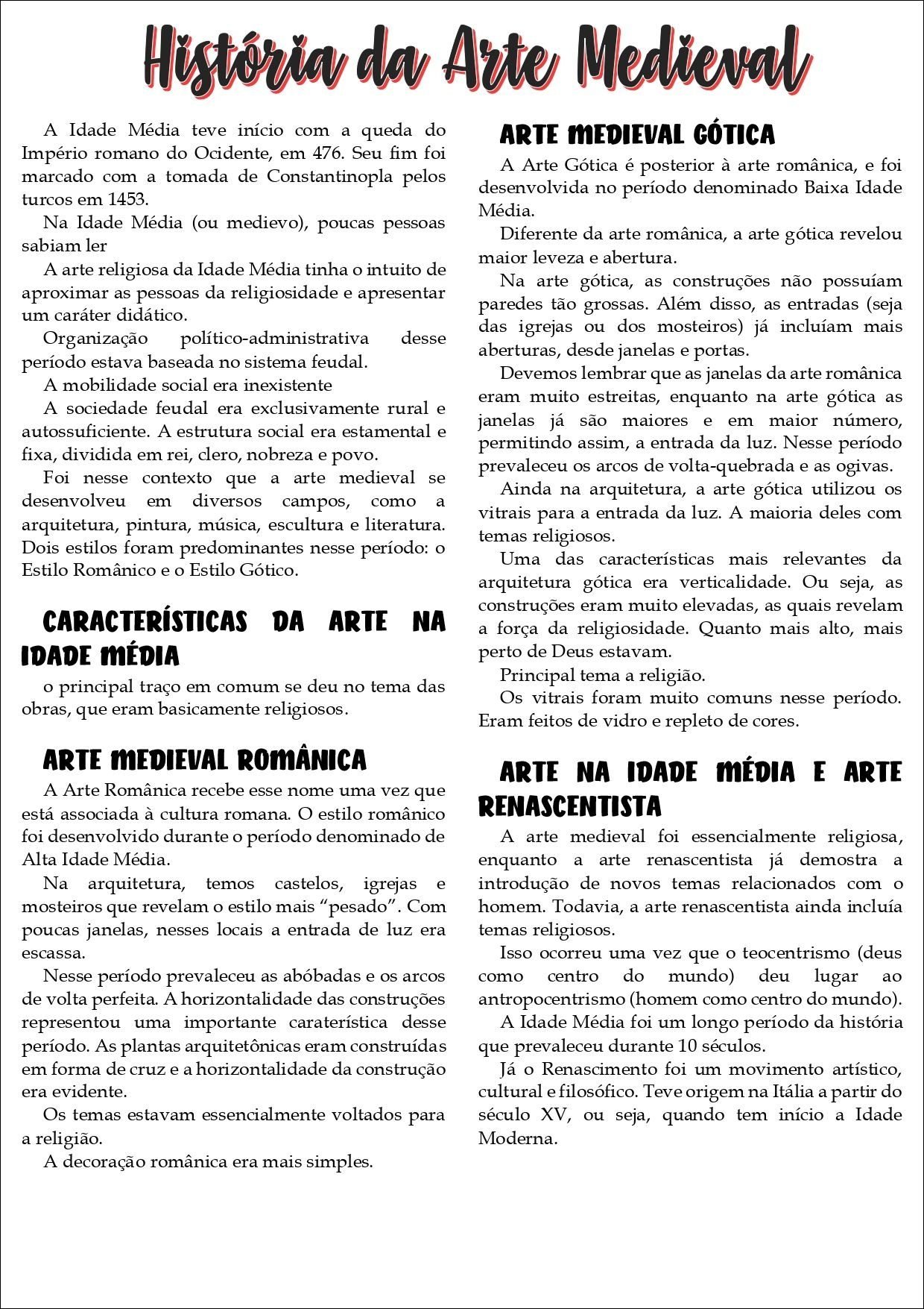 Compilação com os melhores mapas mentais, conceituais, infográficos, diagramas e resumos sobre Arte medieval.