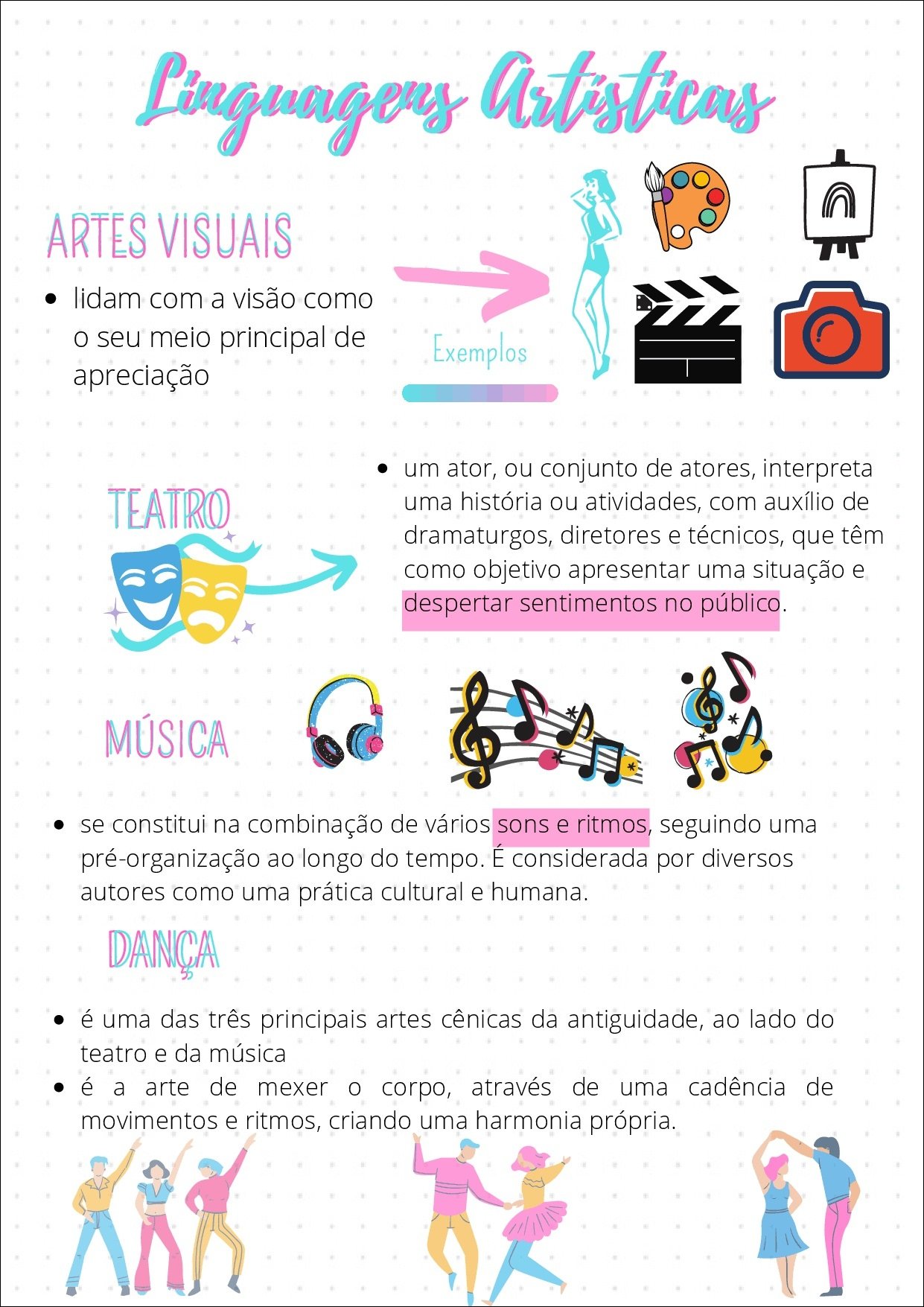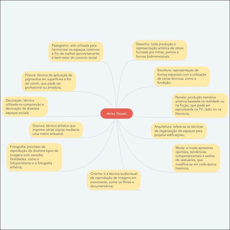 Compilação com os melhores mapas mentais, conceituais, infográficos, diagramas e resumos sobre artes visuais.