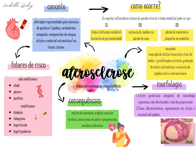 Compilação com os melhores mapas mentais, conceituais, infográficos, diagramas e resumos sobre aterosclerose.