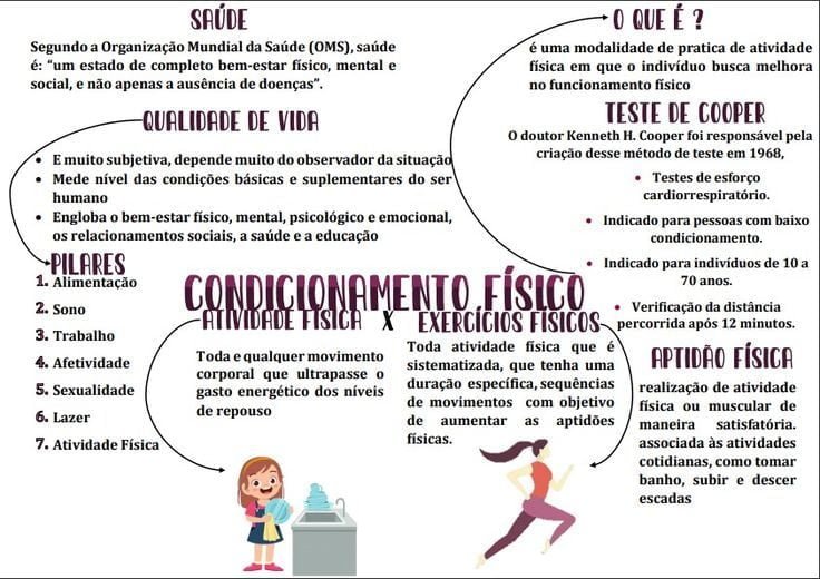 Compilação com os melhores mapas mentais, conceituais, infográficos, diagramas e resumos sobre atividade física.