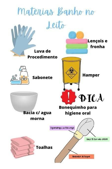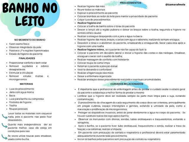 Compilação com os melhores mapas mentais, conceituais, infográficos, diagramas e resumos sobre banho no leito.