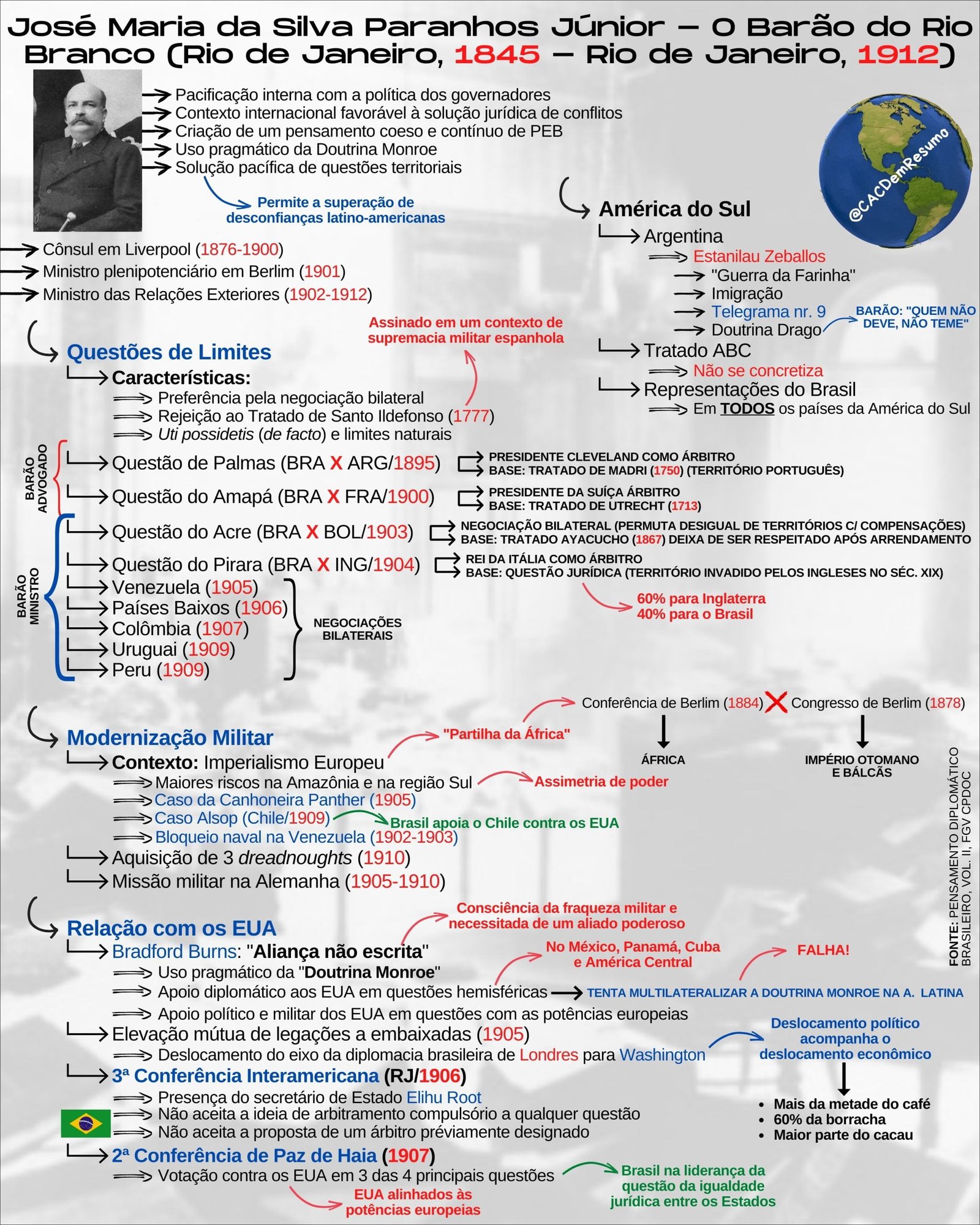 Compilação com os melhores mapas mentais, conceituais, infográficos, diagramas e resumos sobre Barão do Rio Branco.