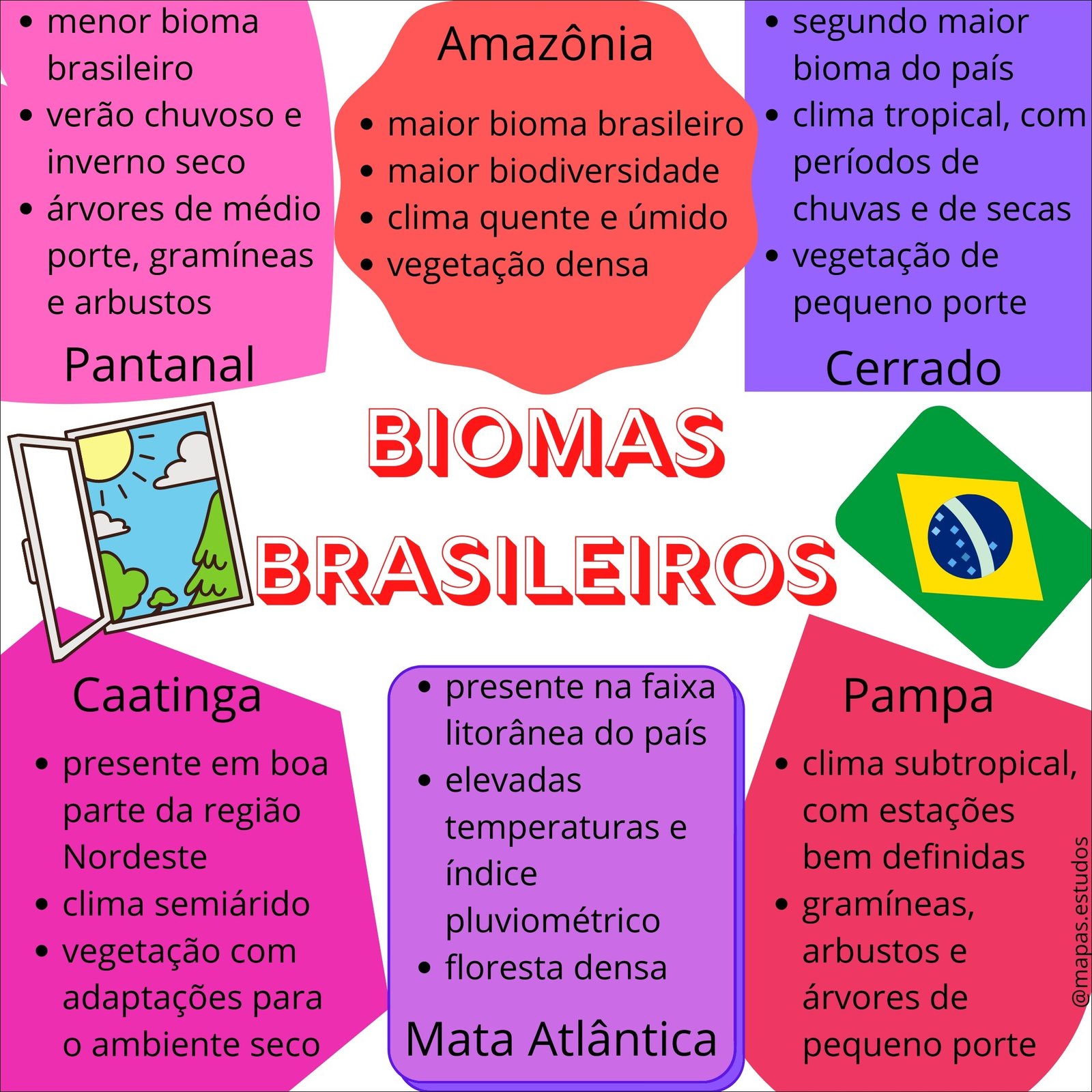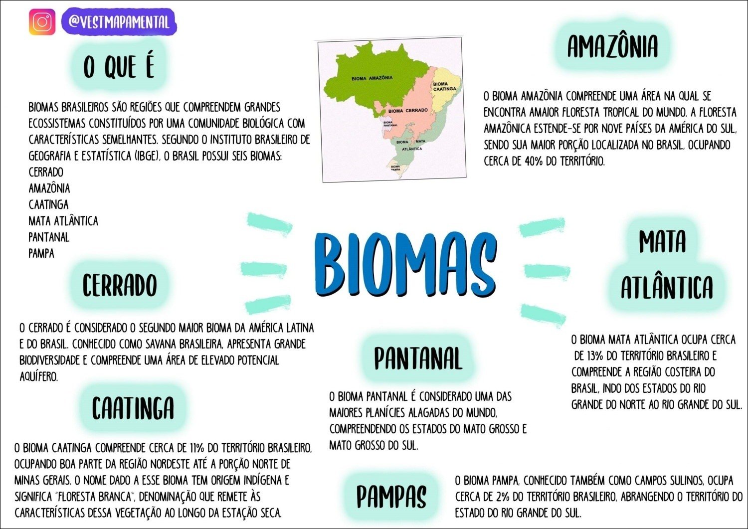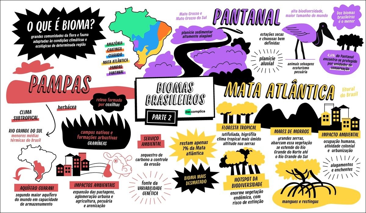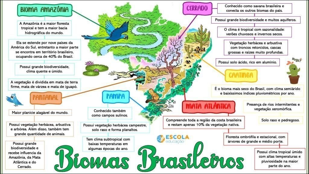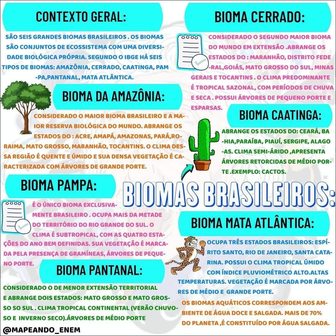 Compilação com os melhores mapas mentais, conceituais, infográficos, diagramas e resumos sobre biomas brasileiros.