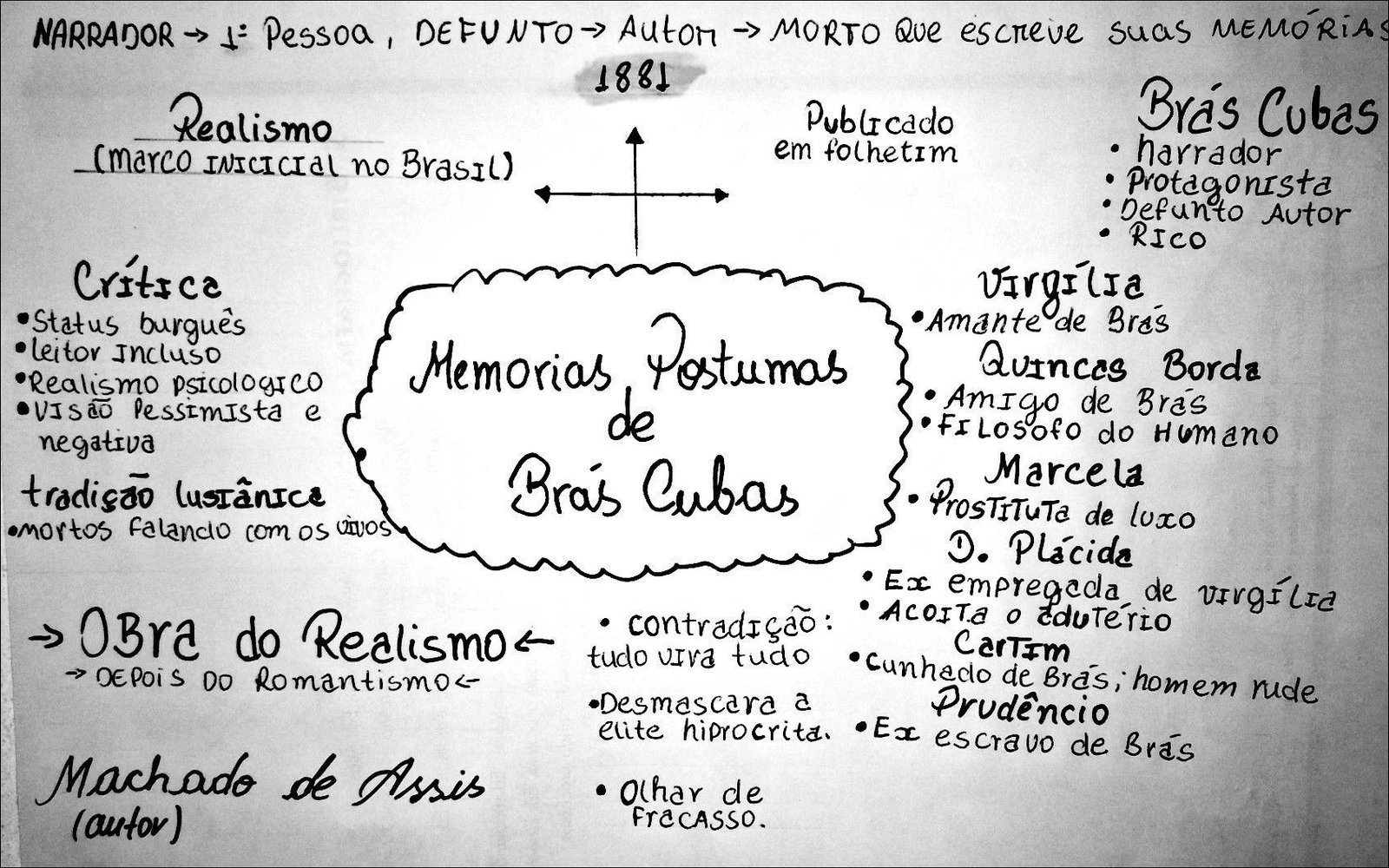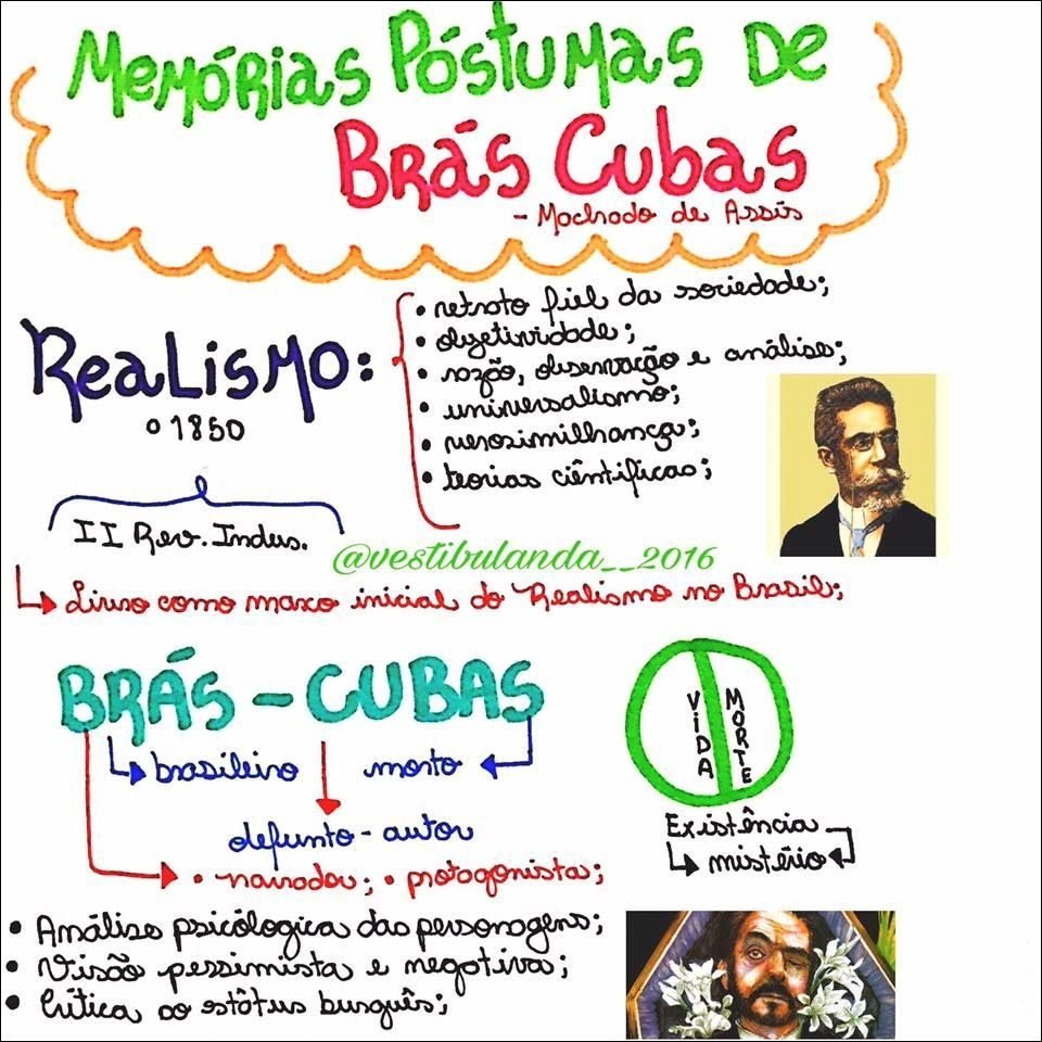 Compilação com os melhores mapas mentais, conceituais, infográficos, diagramas e resumos sobre bras cubas.