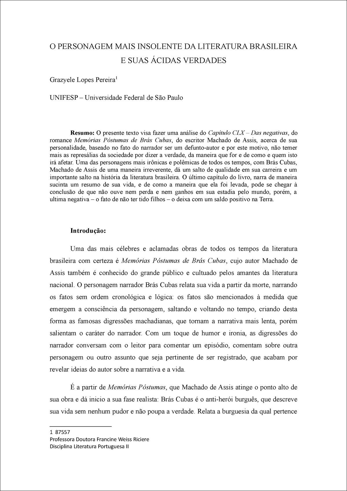 Resumo sobre bras cubas