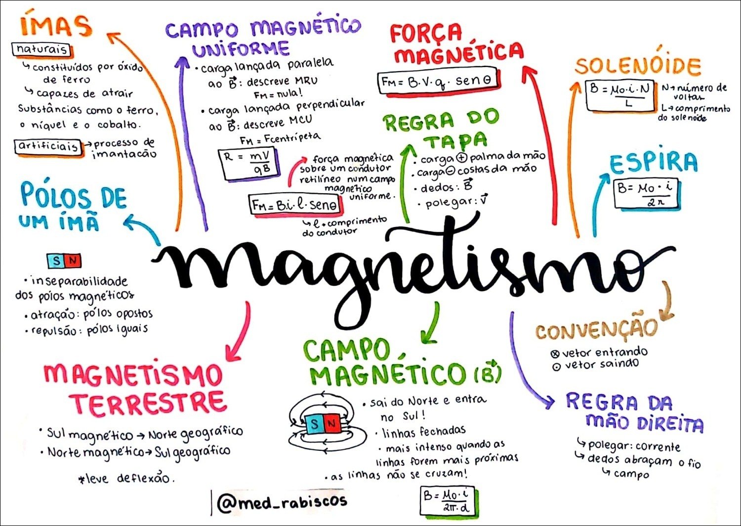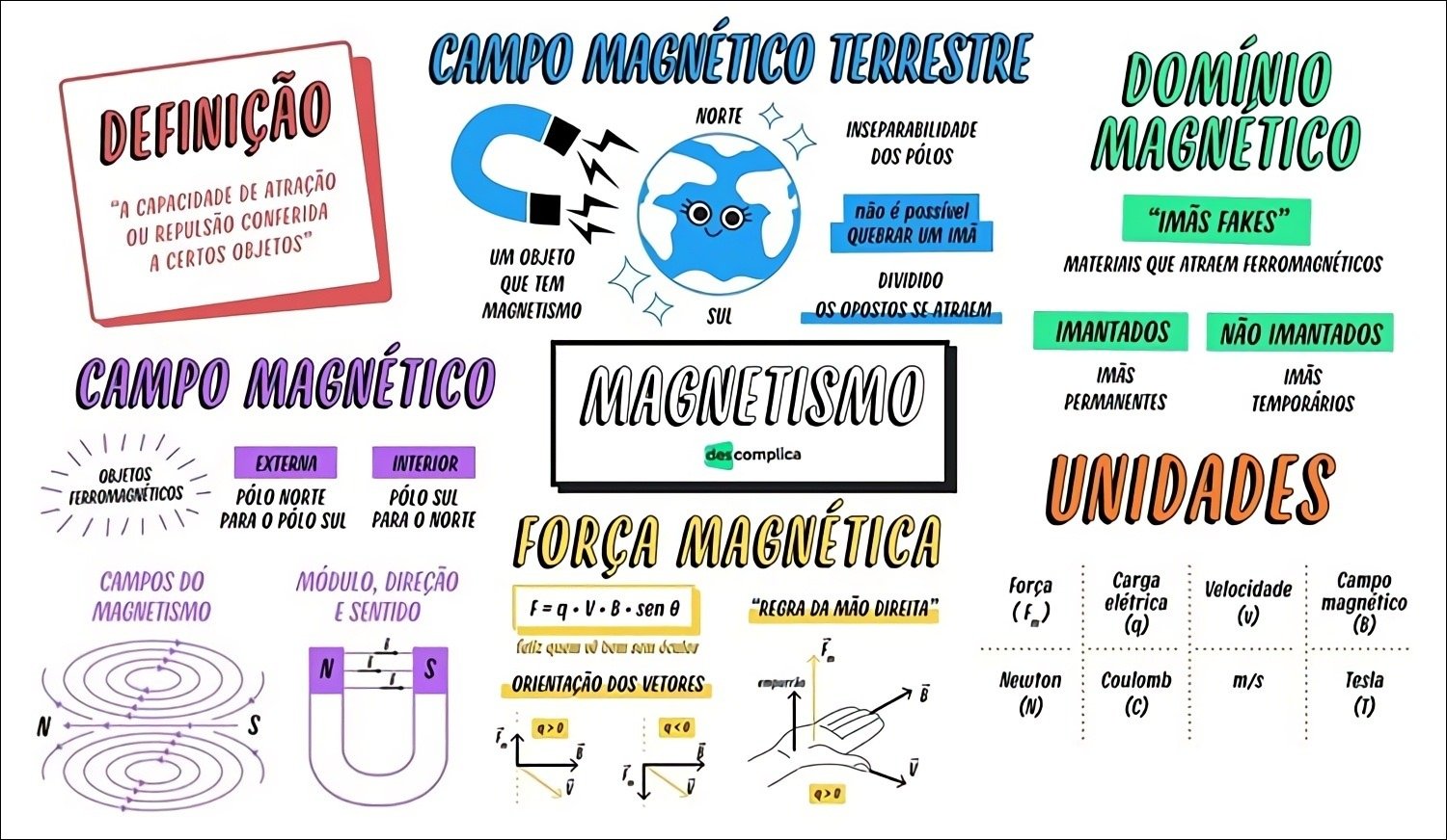 Compilação com os melhores mapas mentais, conceituais, infográficos, diagramas e resumos sobre campo magnético.