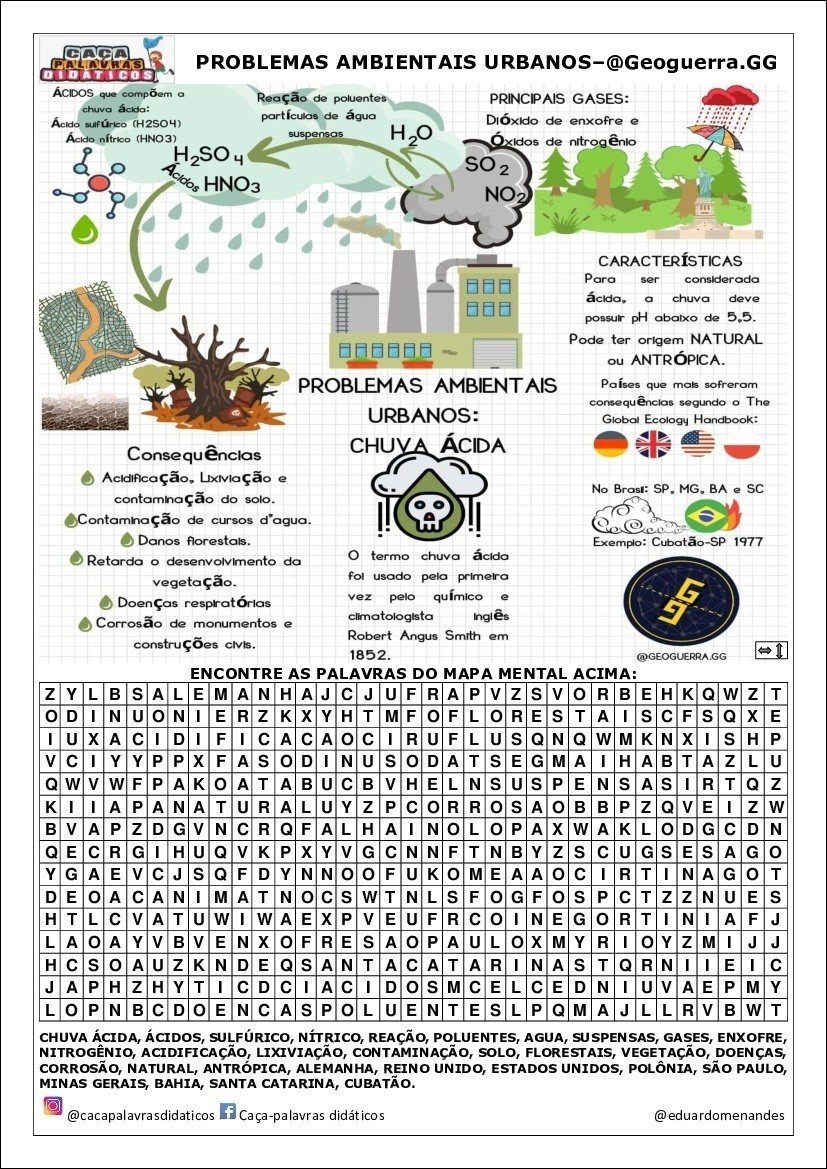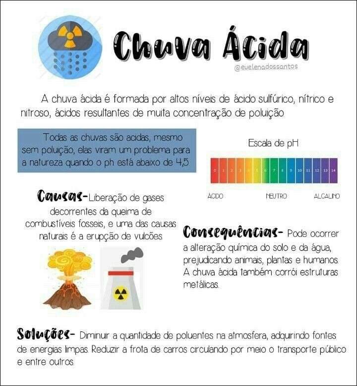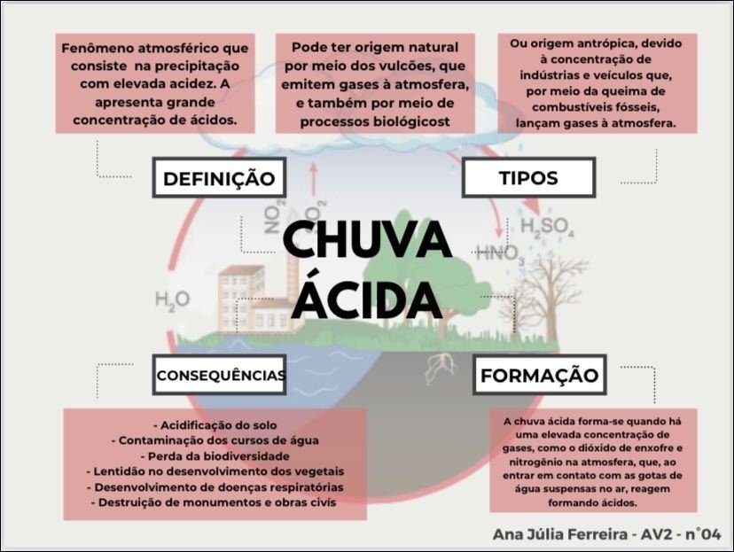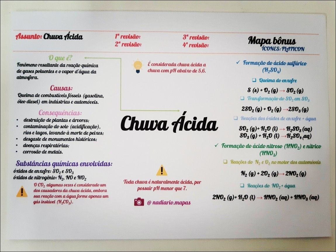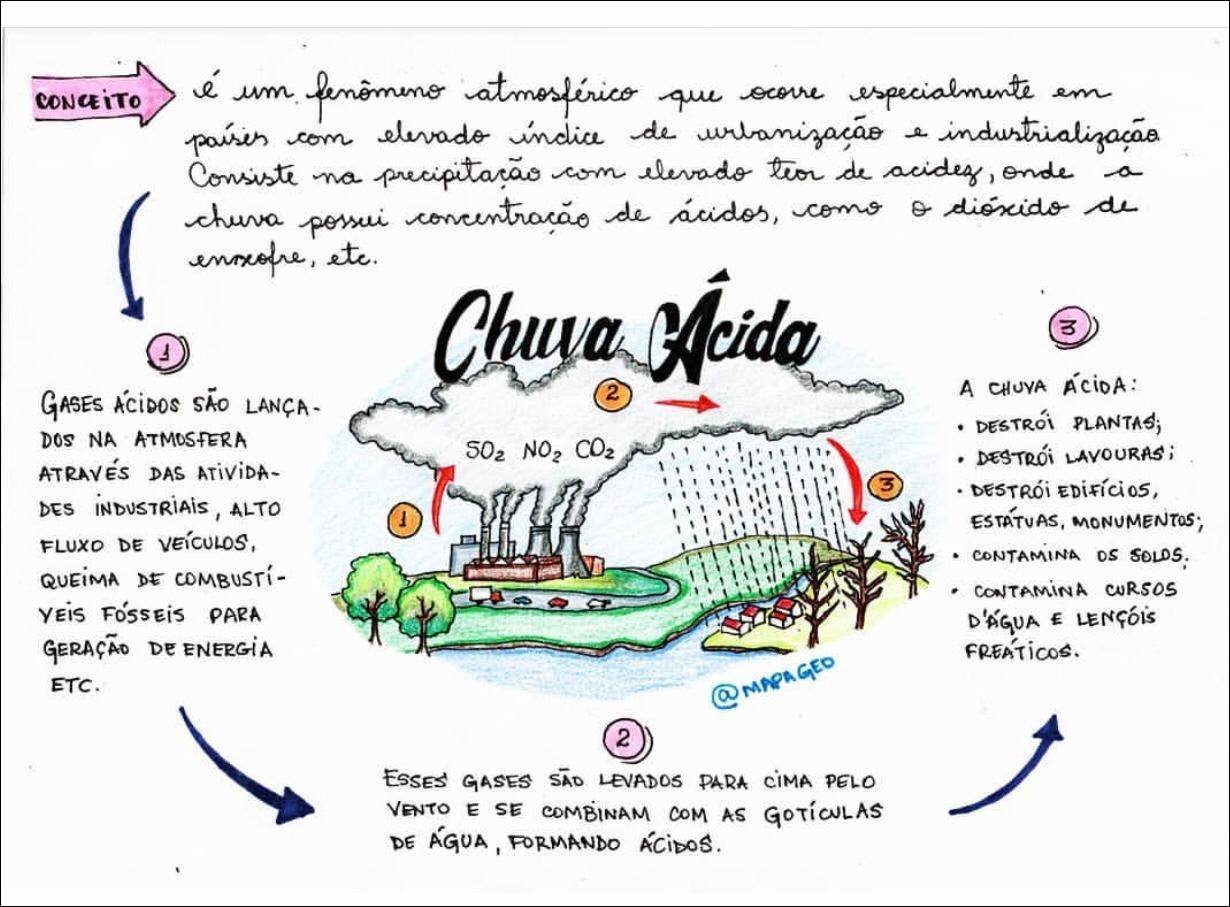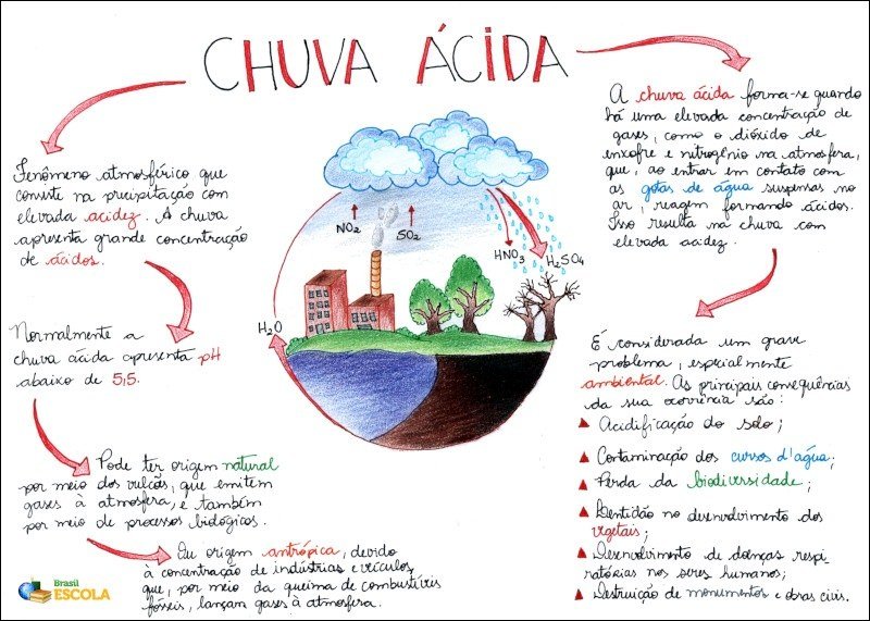 Compilação com os melhores mapas mentais, conceituais, infográficos, diagramas e resumos sobre chuva ácida.