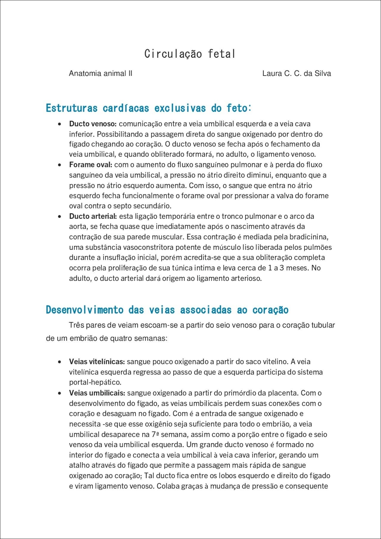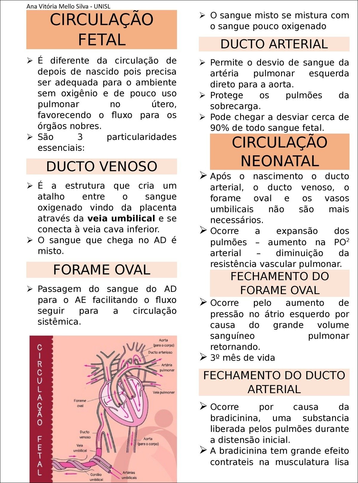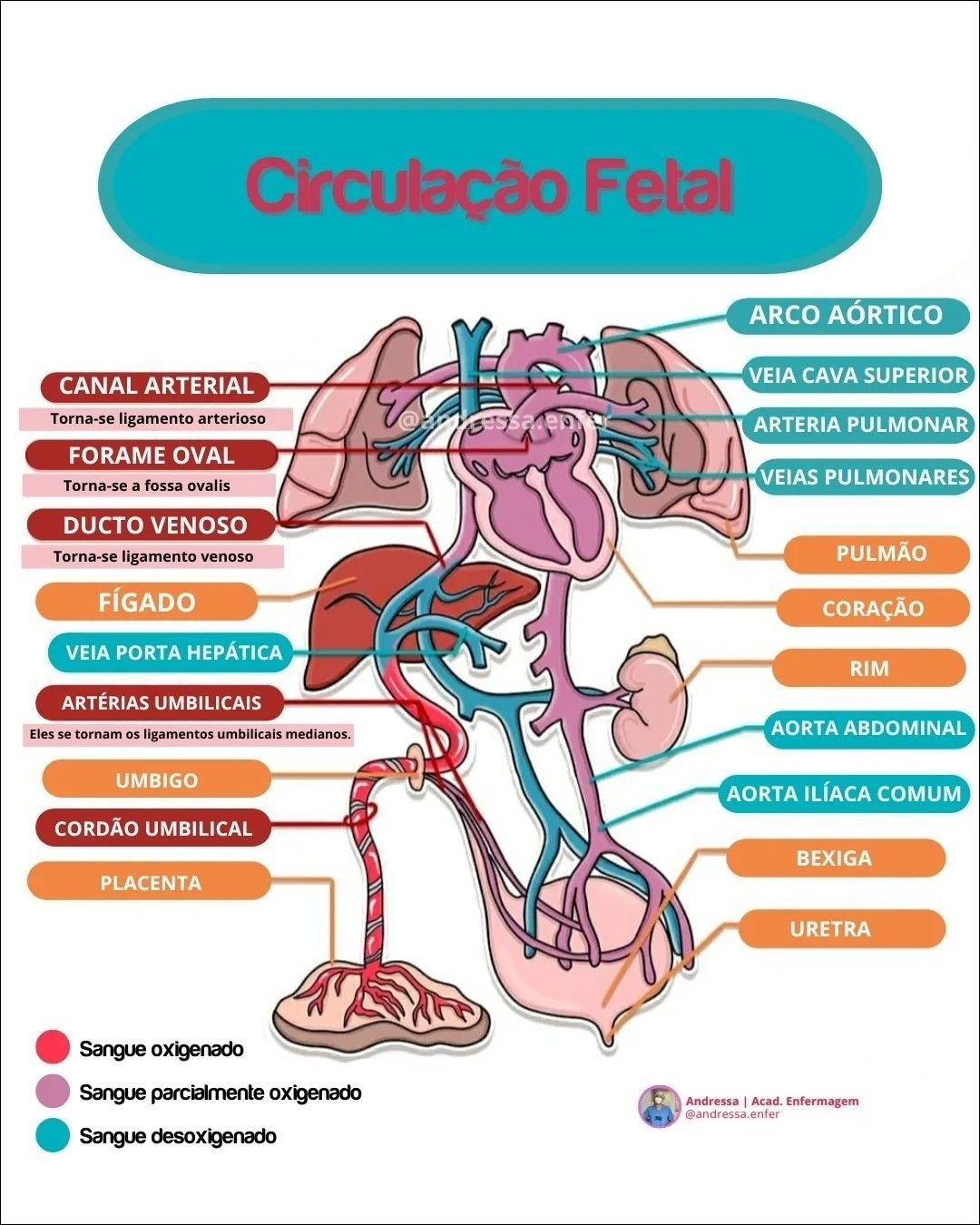 A circulação fetal é um sistema intrincado e especializado que permite que o feto receba oxigênio e nutrientes da mãe, e elimine resíduos, enquanto ainda está no útero. Diferente da circulação pós-natal, a circulação fetal desvia o sangue dos pulmões e do fígado, pois esses órgãos não desempenham suas funções respiratórias e metabólicas até o nascimento.
