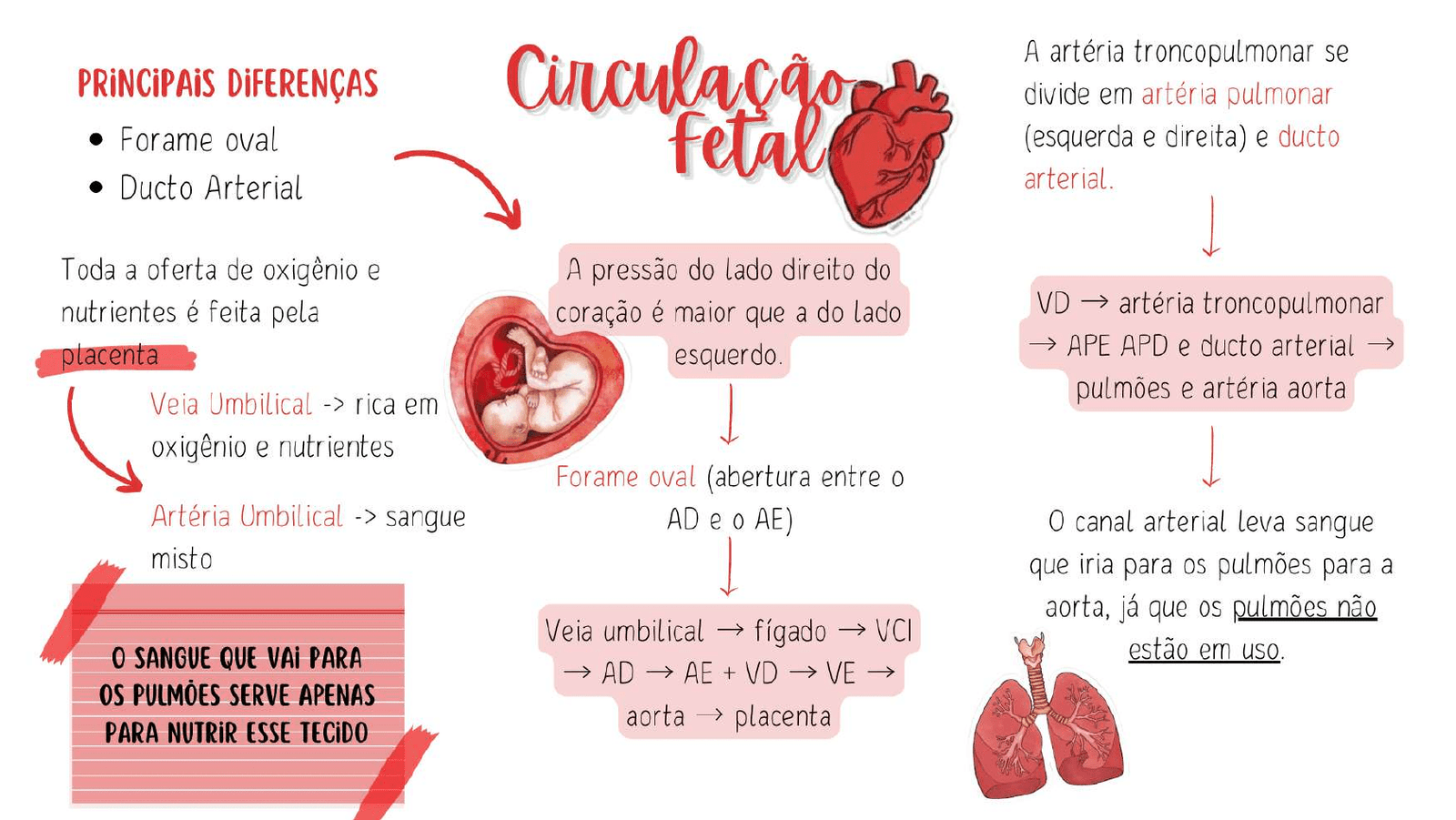 Compilação com os melhores mapas mentais, conceituais, infográficos, diagramas e resumos sobre circulação fetal.