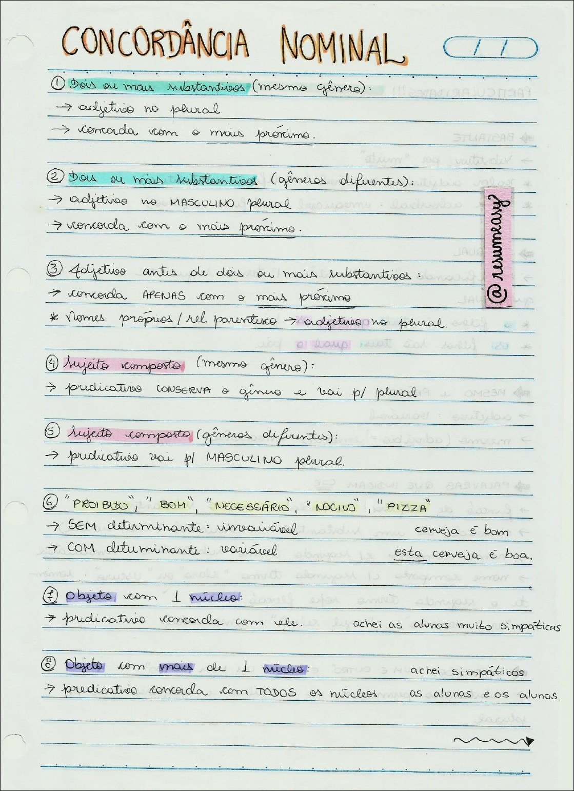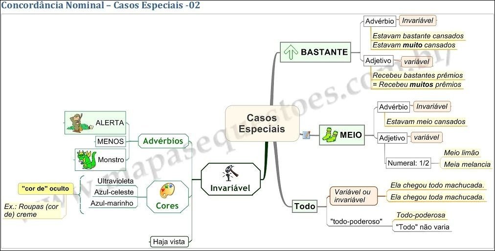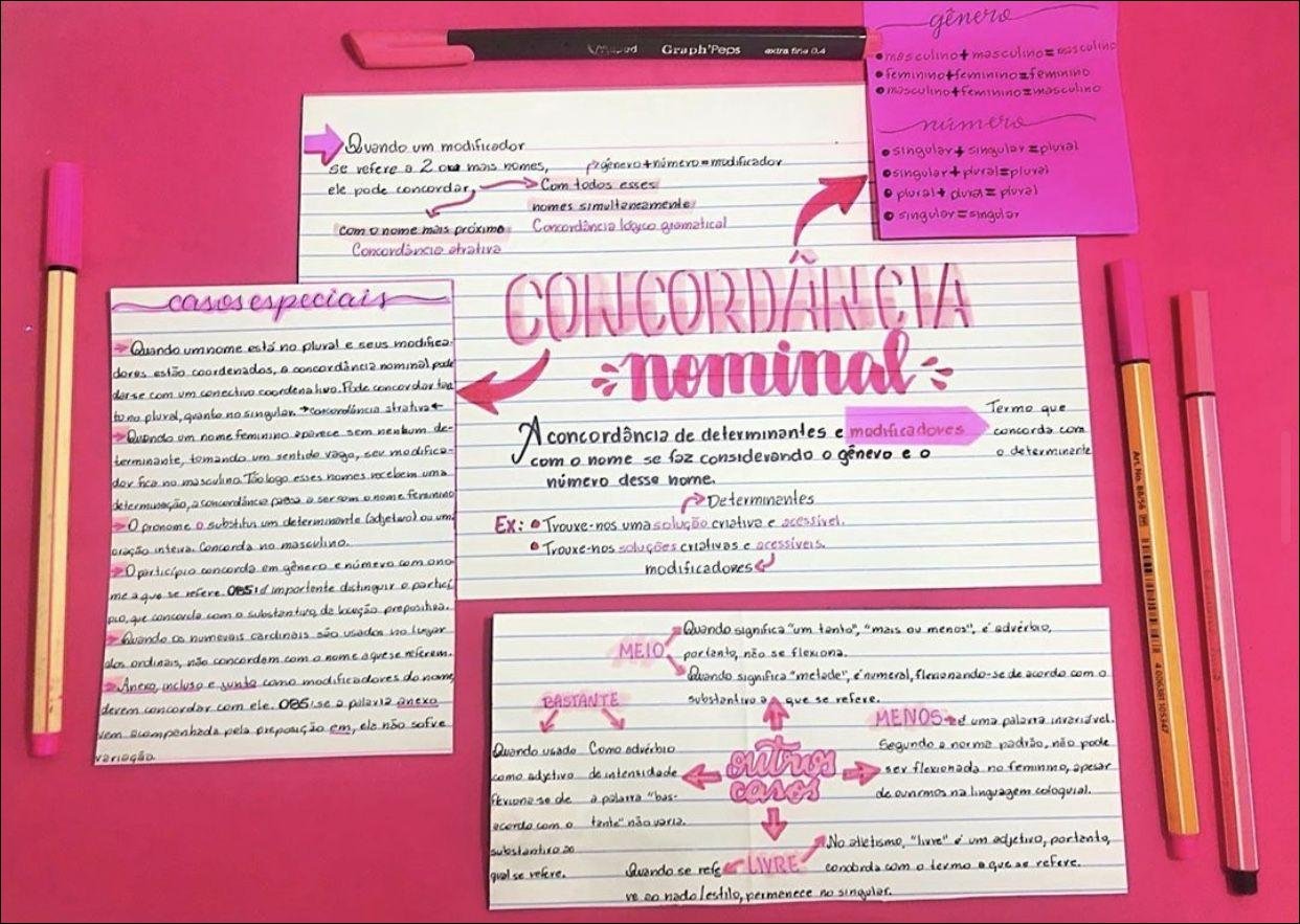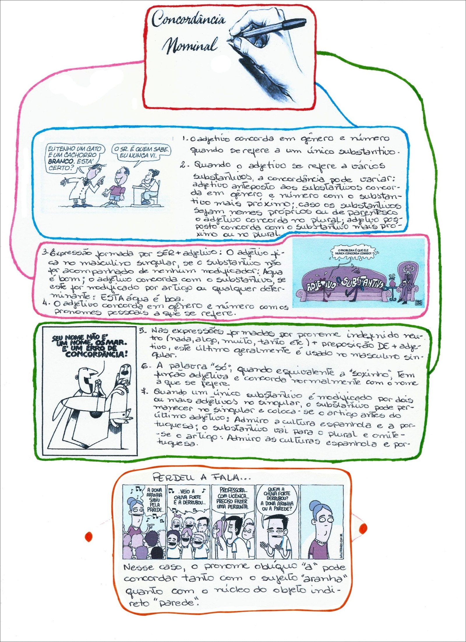 Compilação com os melhores mapas mentais, conceituais, infográficos, diagramas e resumos sobre concordância nominal.