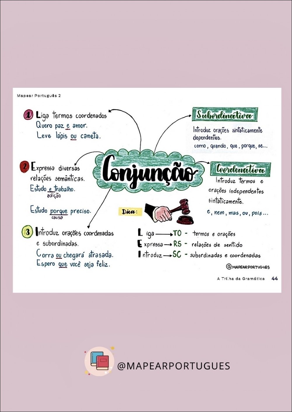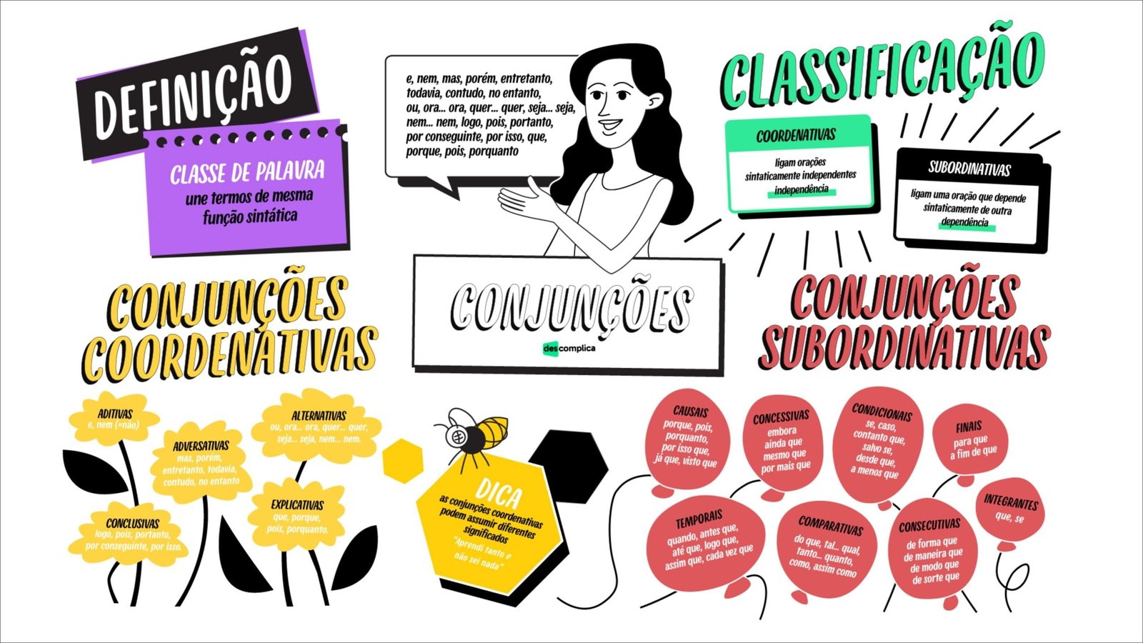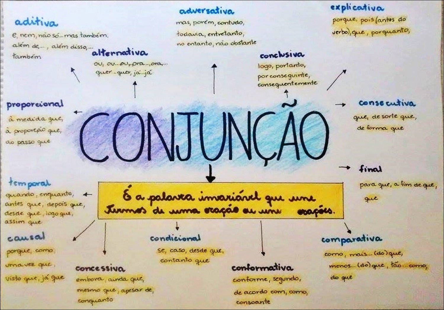 Compilação com os melhores mapas mentais, conceituais, infográficos, diagramas e resumos sobre conjunções.