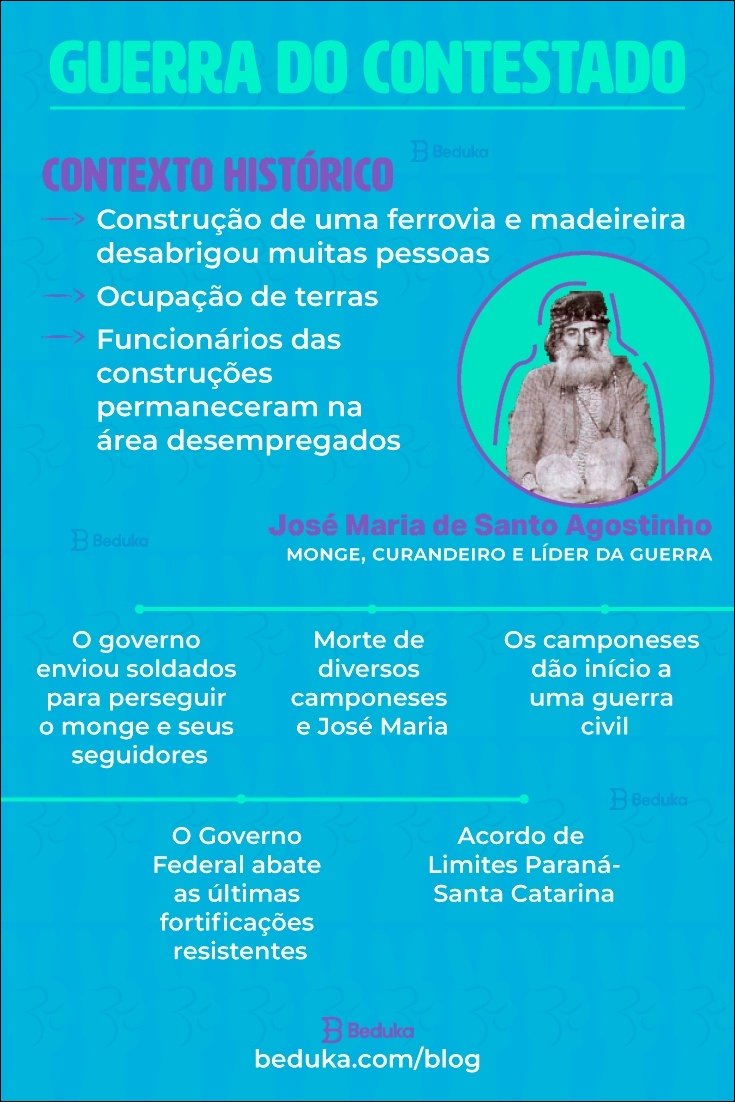 O Contestado foi um conflito armado ocorrido entre 1912 e 1916 na região de fronteira entre os estados do Paraná e Santa Catarina, no sul do Brasil. Originado por tensões sociais, econômicas e políticas, o conflito foi um dos mais violentos da história brasileira e resultou em milhares de mortes.