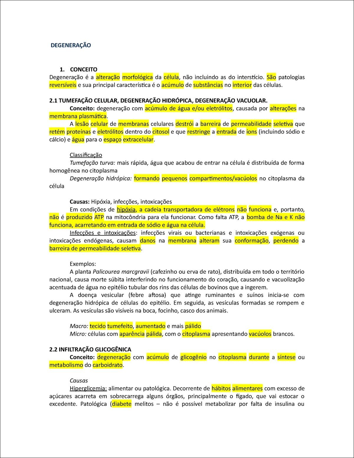 Resumo sobre degeneração celular