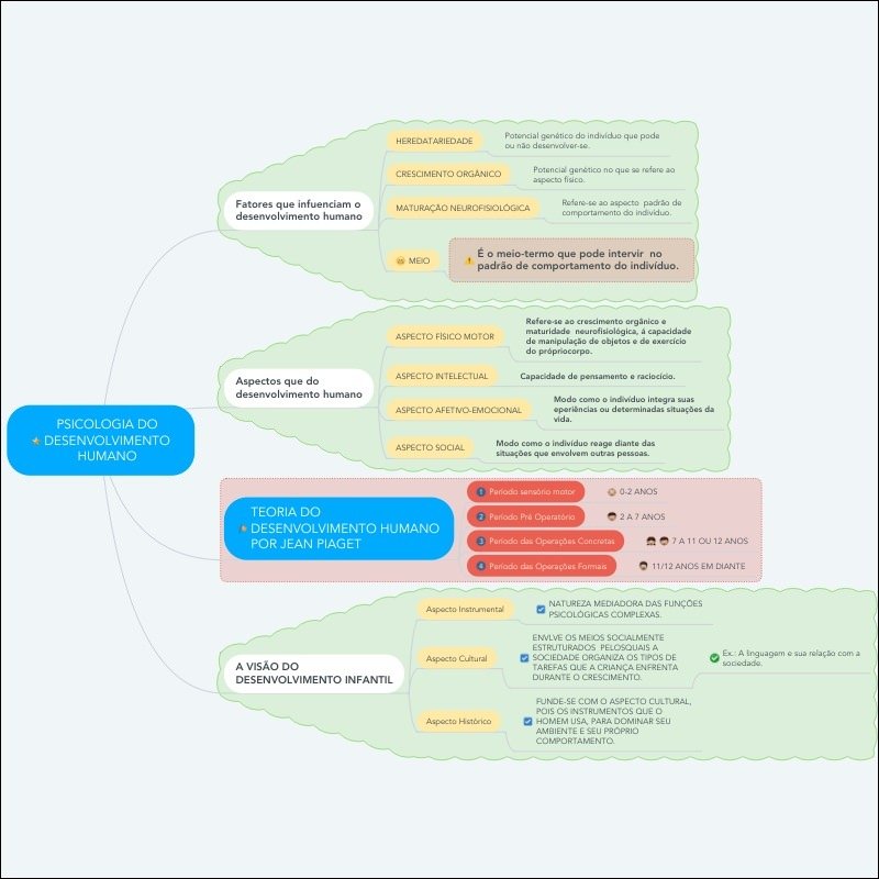 Compilação com os melhores mapas mentais, conceituais, infográficos, diagramas e resumos sobre desenvolvimento humano.