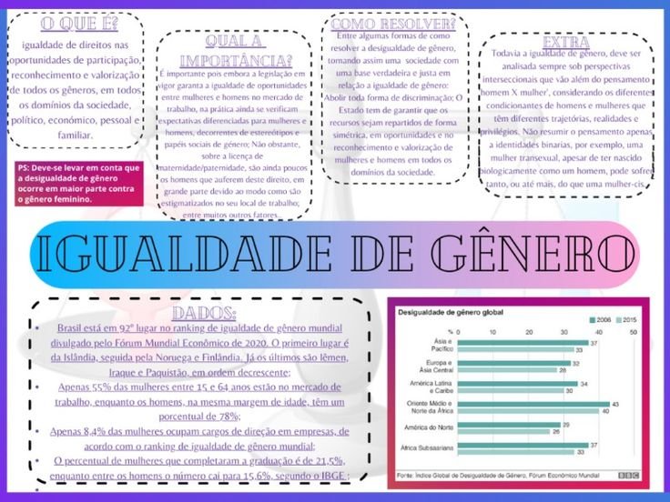 Compilação com os melhores mapas mentais, conceituais, infográficos, diagramas e resumos sobre desigualdade de gênero.