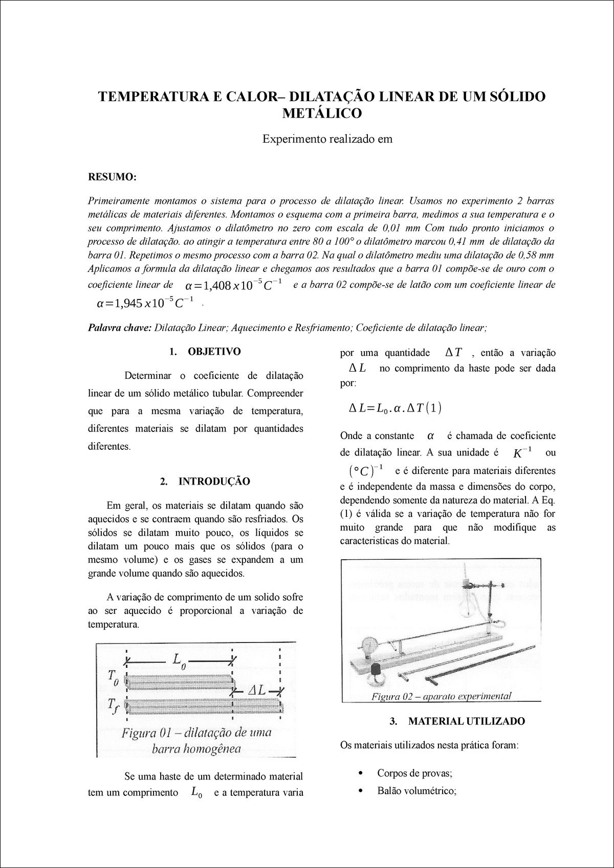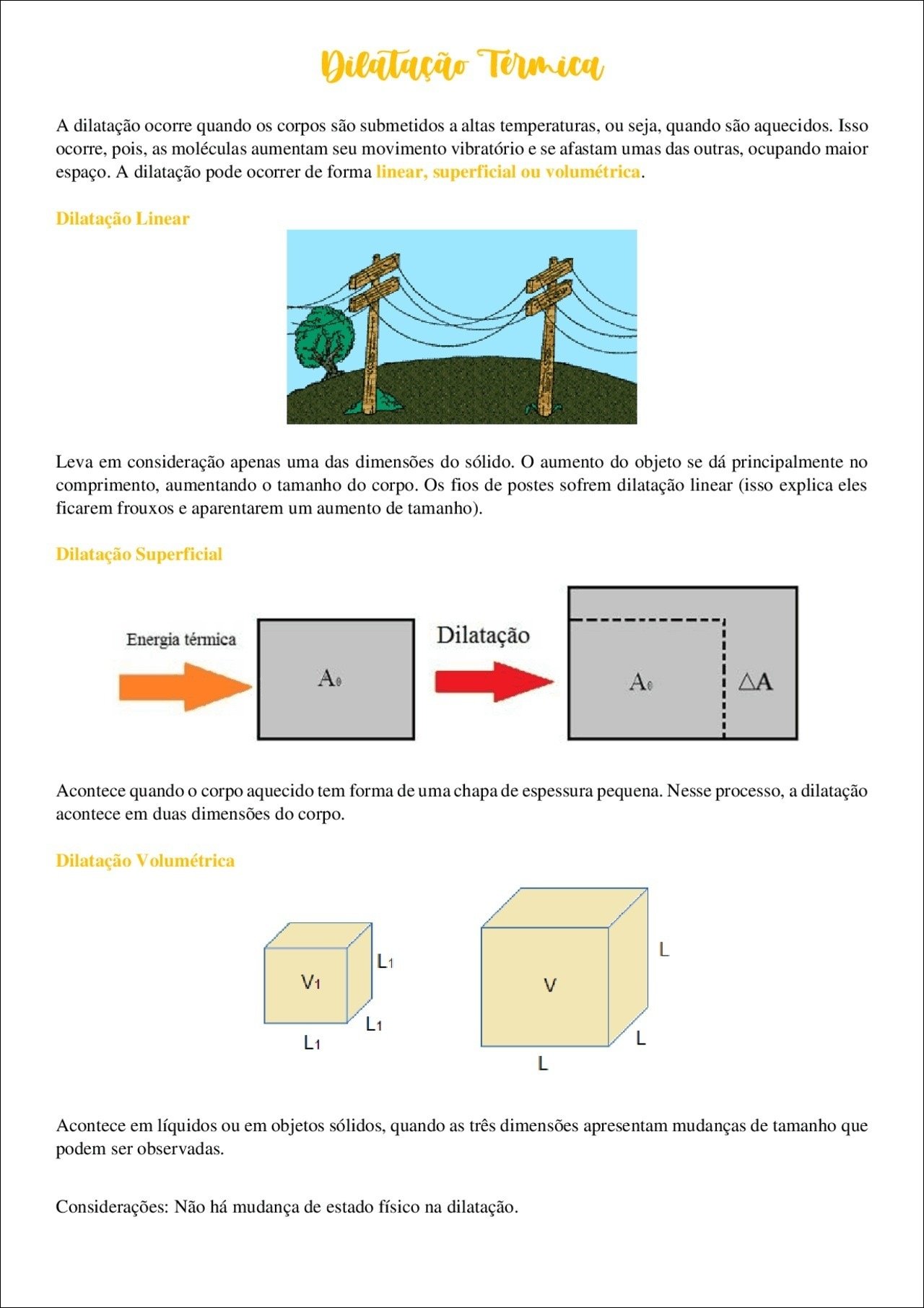 Resumo sobre “dilatação linear”