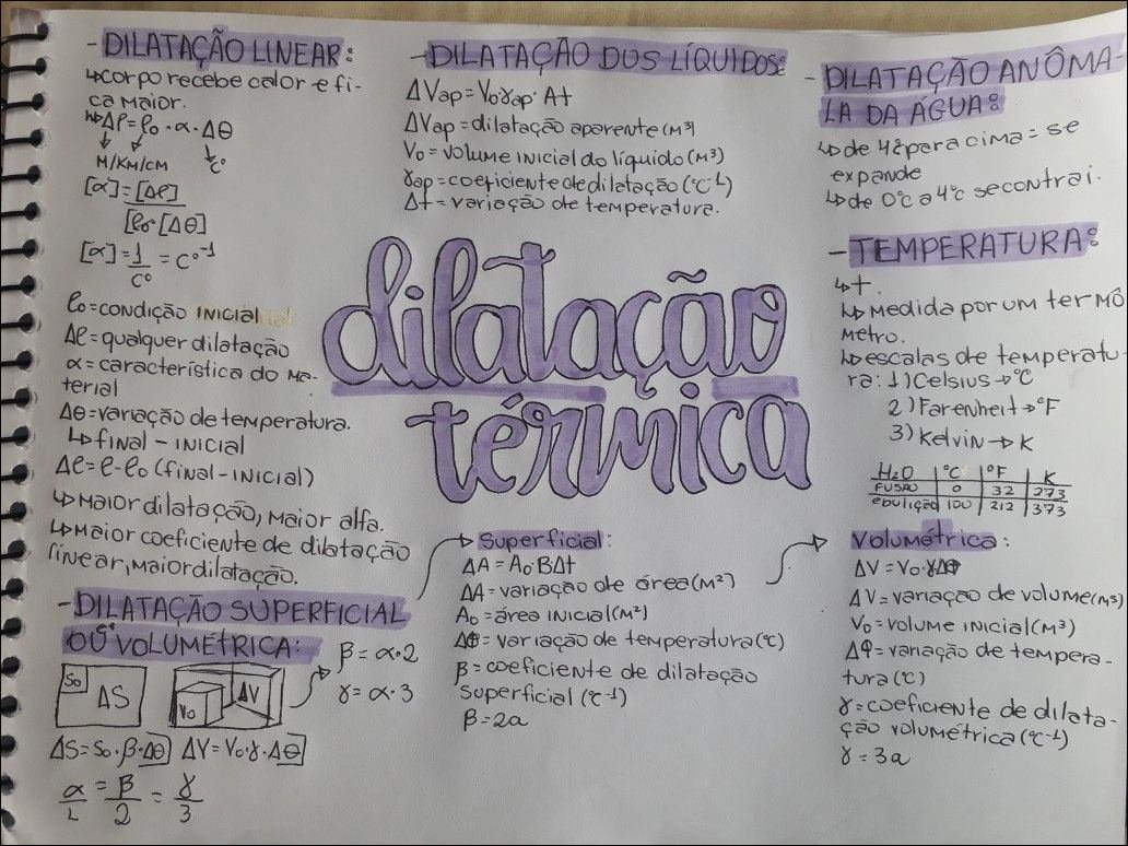 Compilação com os melhores mapas mentais, conceituais, infográficos, diagramas e resumos sobre “dilatação linear”.