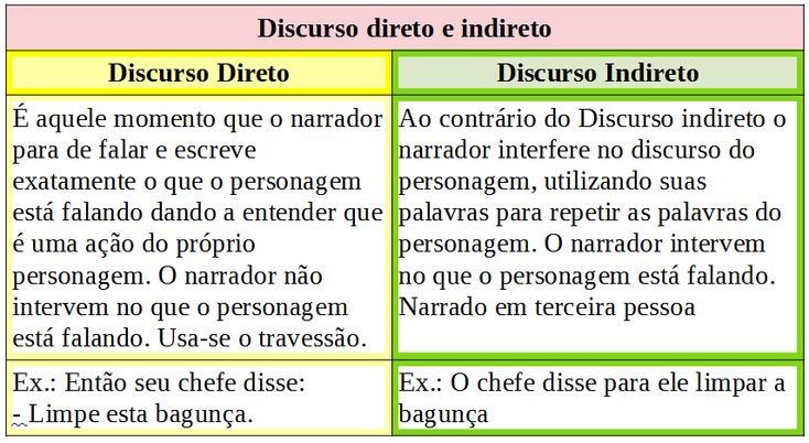 Resumo sobre discurso direto e indireto
