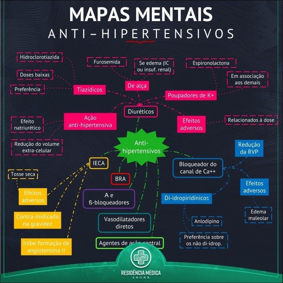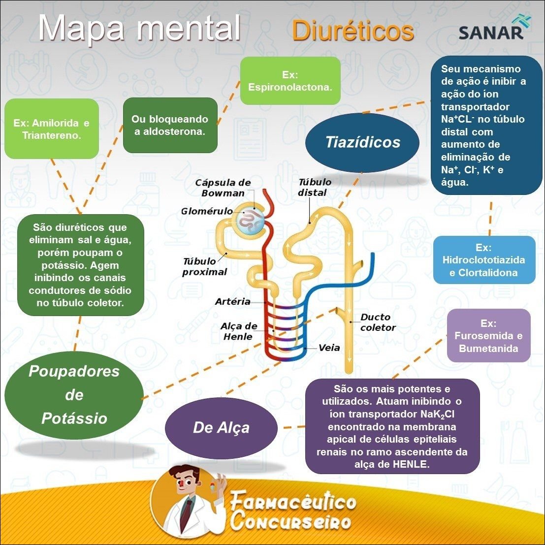 Compilação com os melhores mapas mentais, conceituais, infográficos, diagramas e resumos sobre diuréticos.