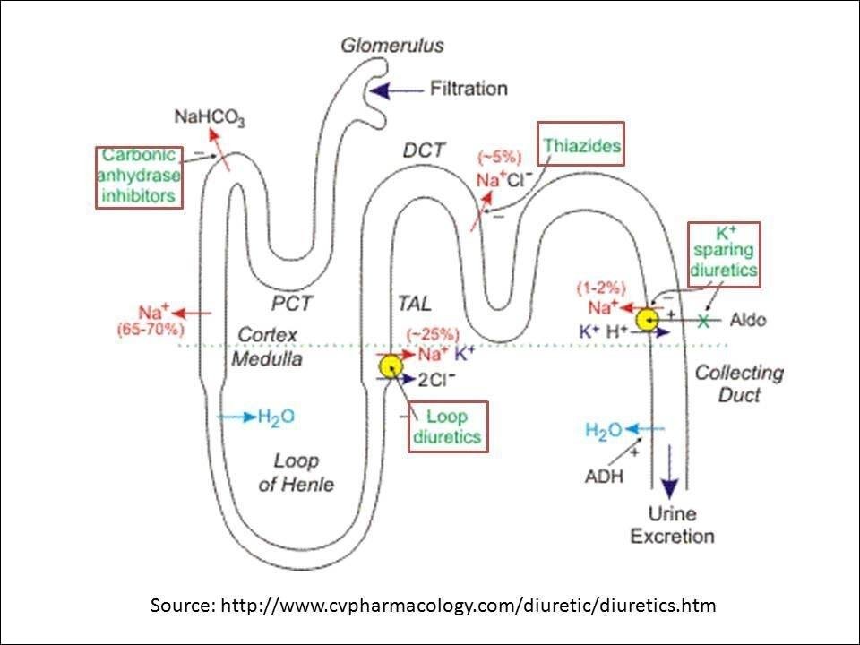 Existem diferentes classes de diuréticos, cada uma agindo em diferentes partes dos néfrons (as unidades funcionais dos rins) e com mecanismos de ação distintos. Os diuréticos tiazídicos, por exemplo, atuam no túbulo contorcido distal, inibindo a reabsorção de sódio e cloreto, e consequentemente de água. Os diuréticos de alça, como a furosemida, são mais potentes e agem na alça de Henle, bloqueando a reabsorção de sódio, cloreto e potássio. Outras classes incluem os diuréticos poupadores de potássio, que atuam no túbulo contorcido distal e ducto coletor, e os diuréticos osmóticos, que atraem água para os rins.