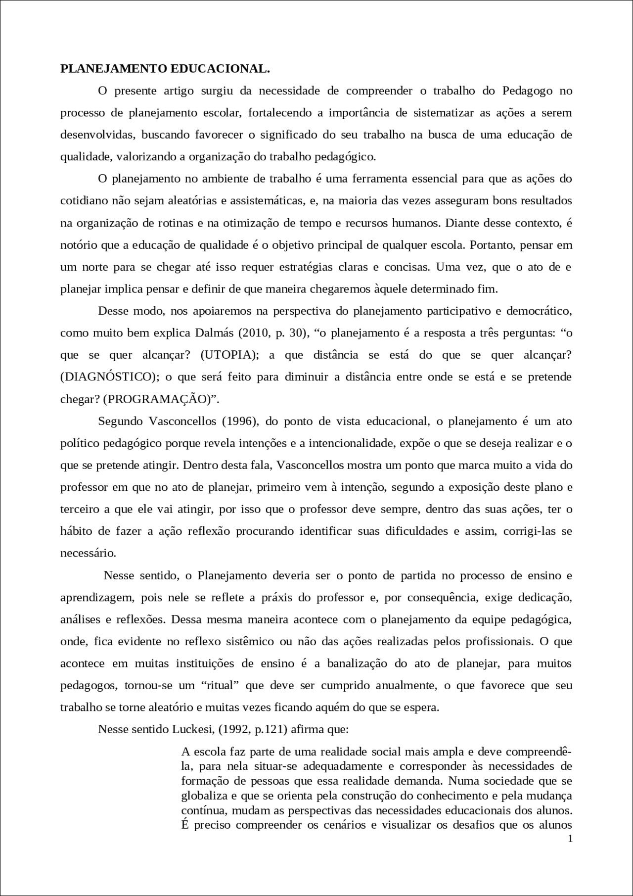 Resumo sobre Educação de qualidade