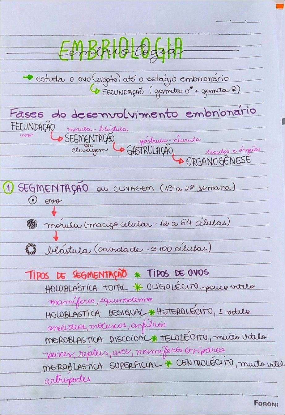 Resumo sobre embriologia