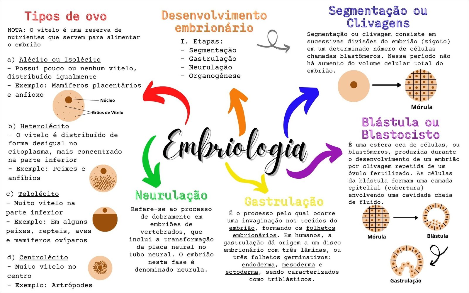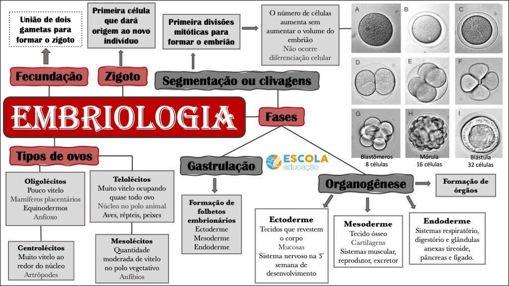 Compilação com os melhores mapas mentais, conceituais, infográficos, diagramas e resumos sobre embriologia.