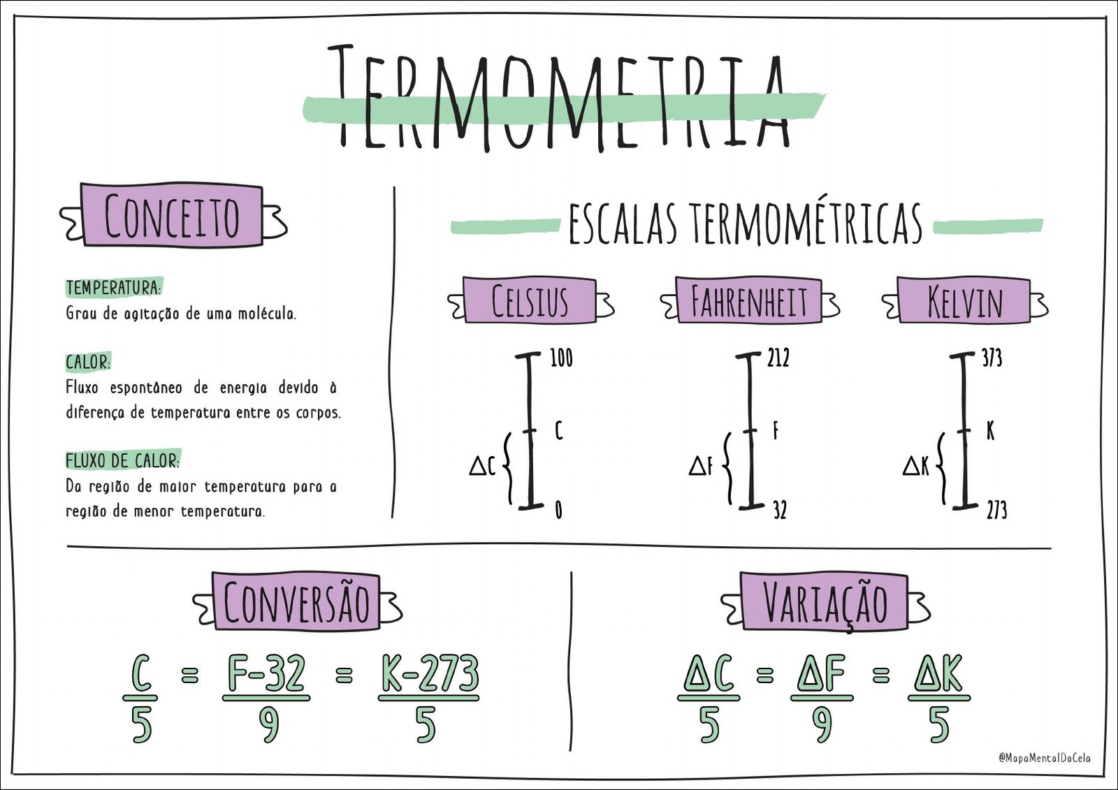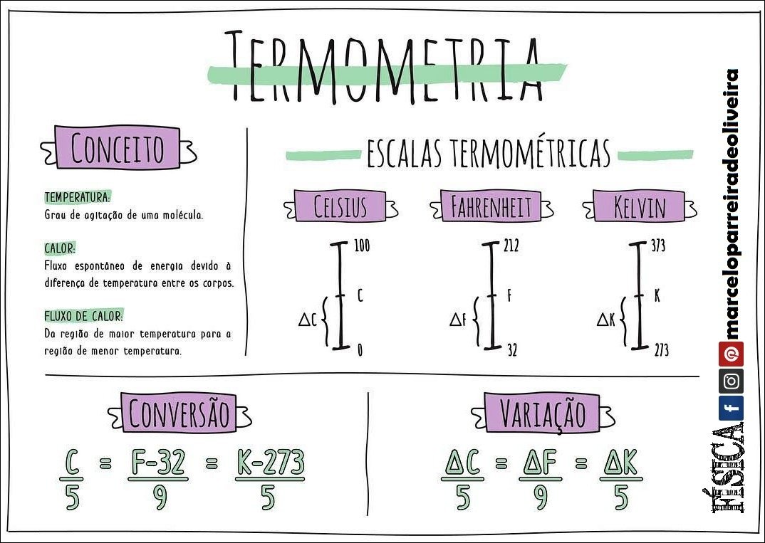 Compilação com os melhores mapas mentais, conceituais, infográficos, diagramas e resumos sobre escalas termométricas.