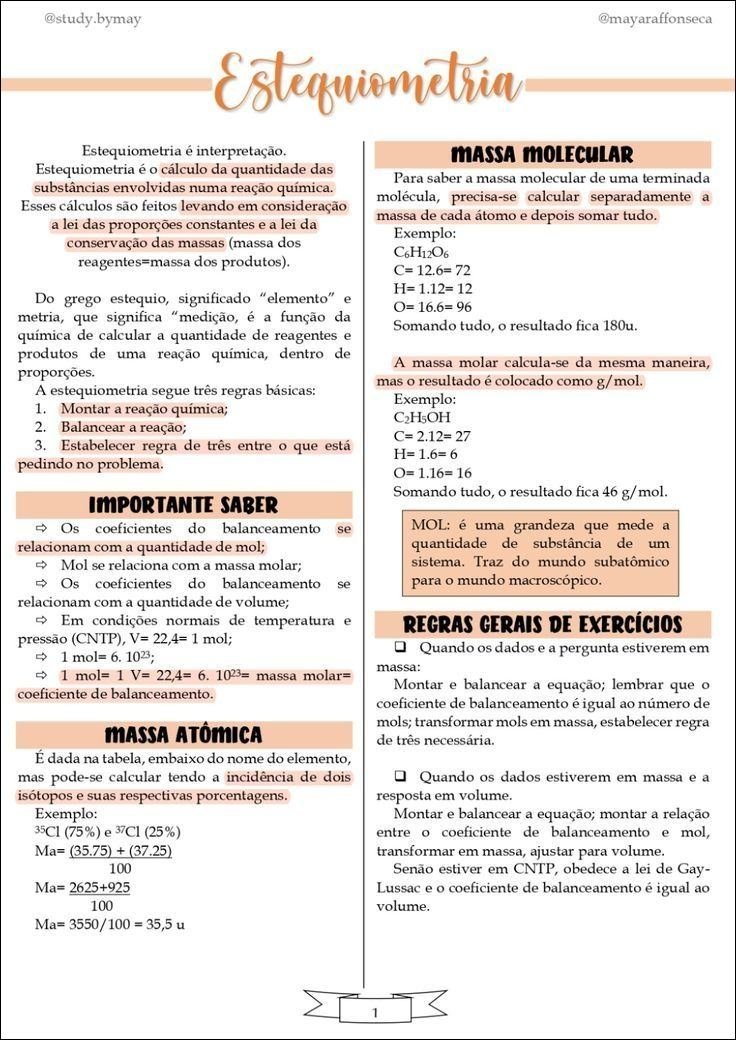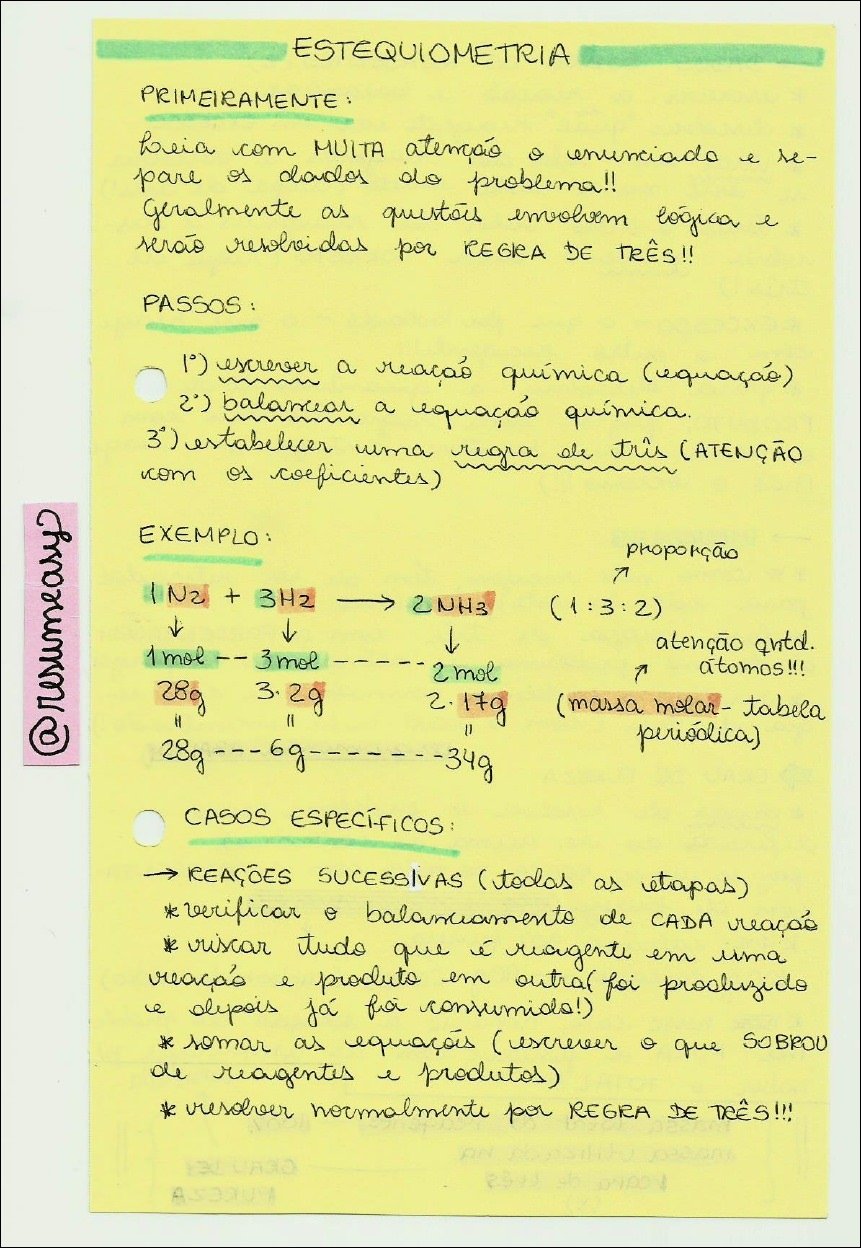 Resumo sobre estequiometria