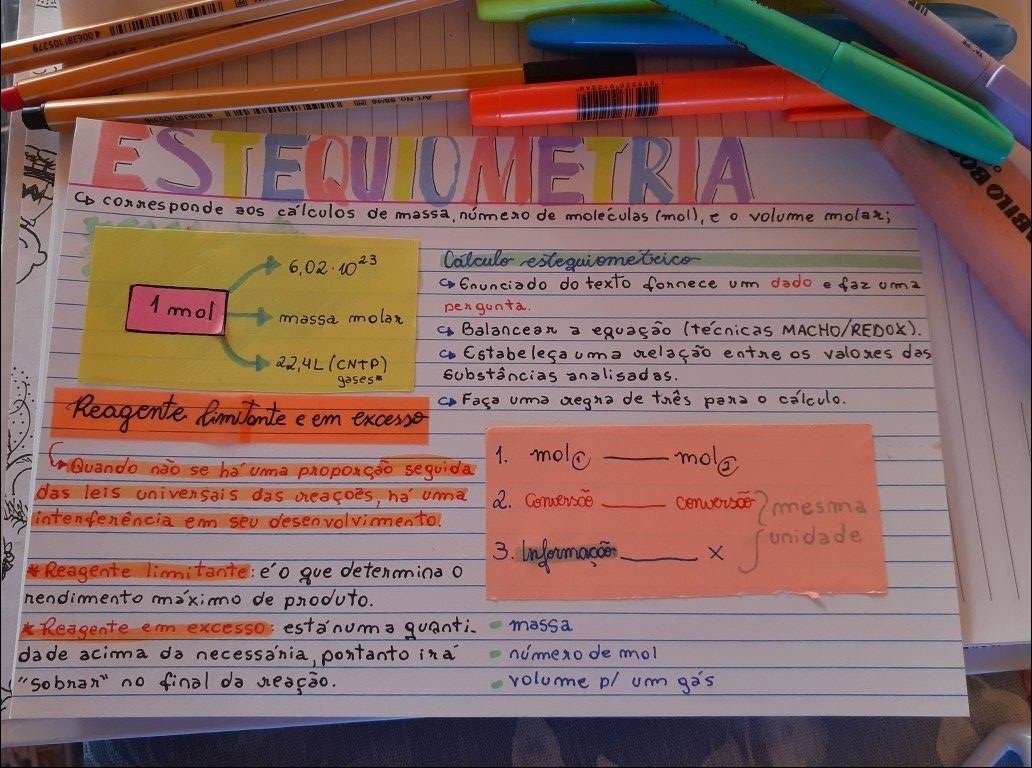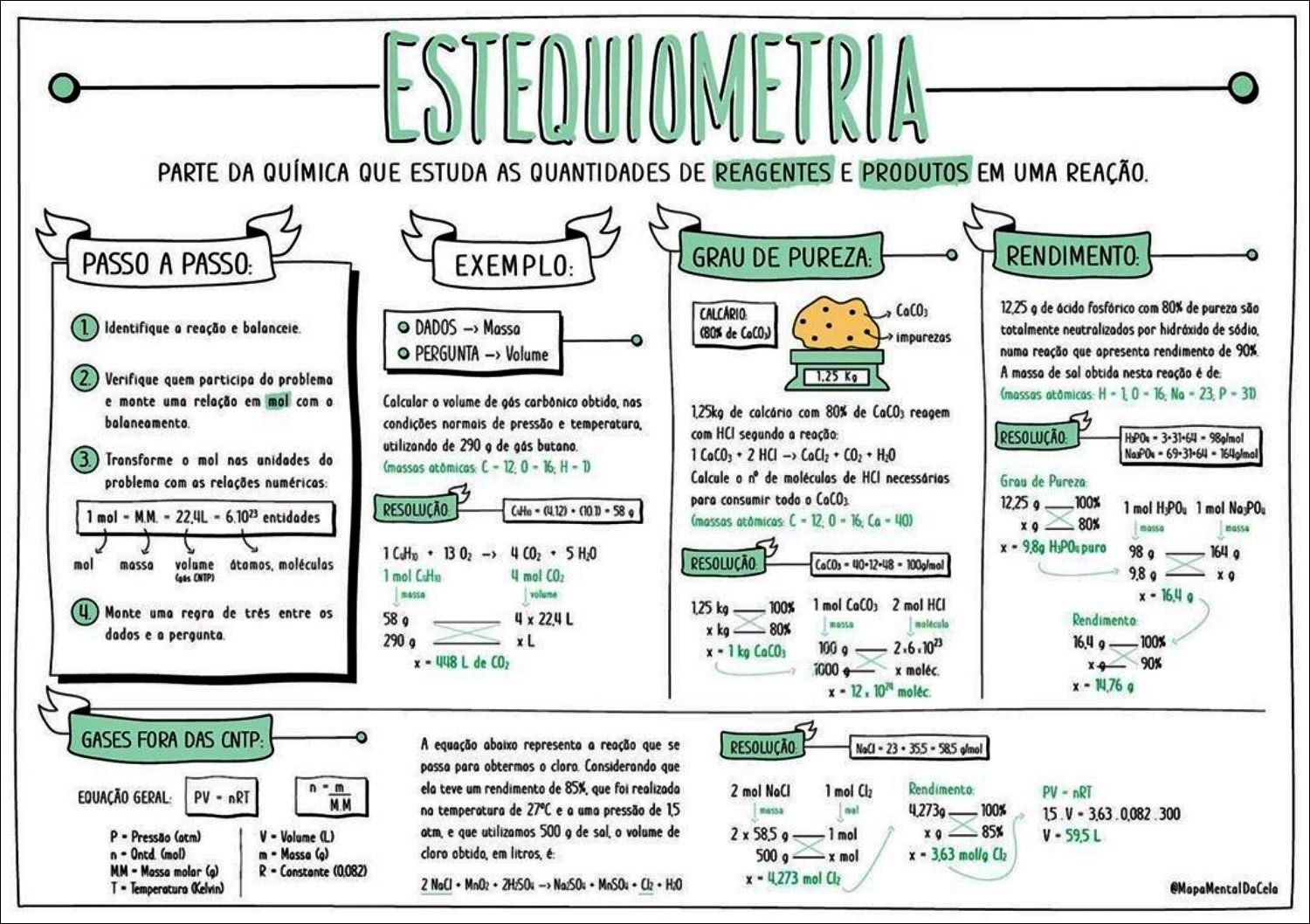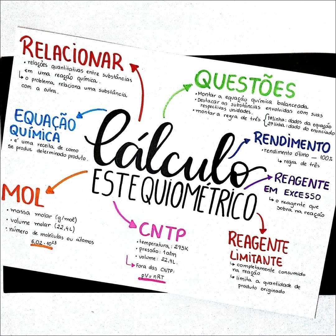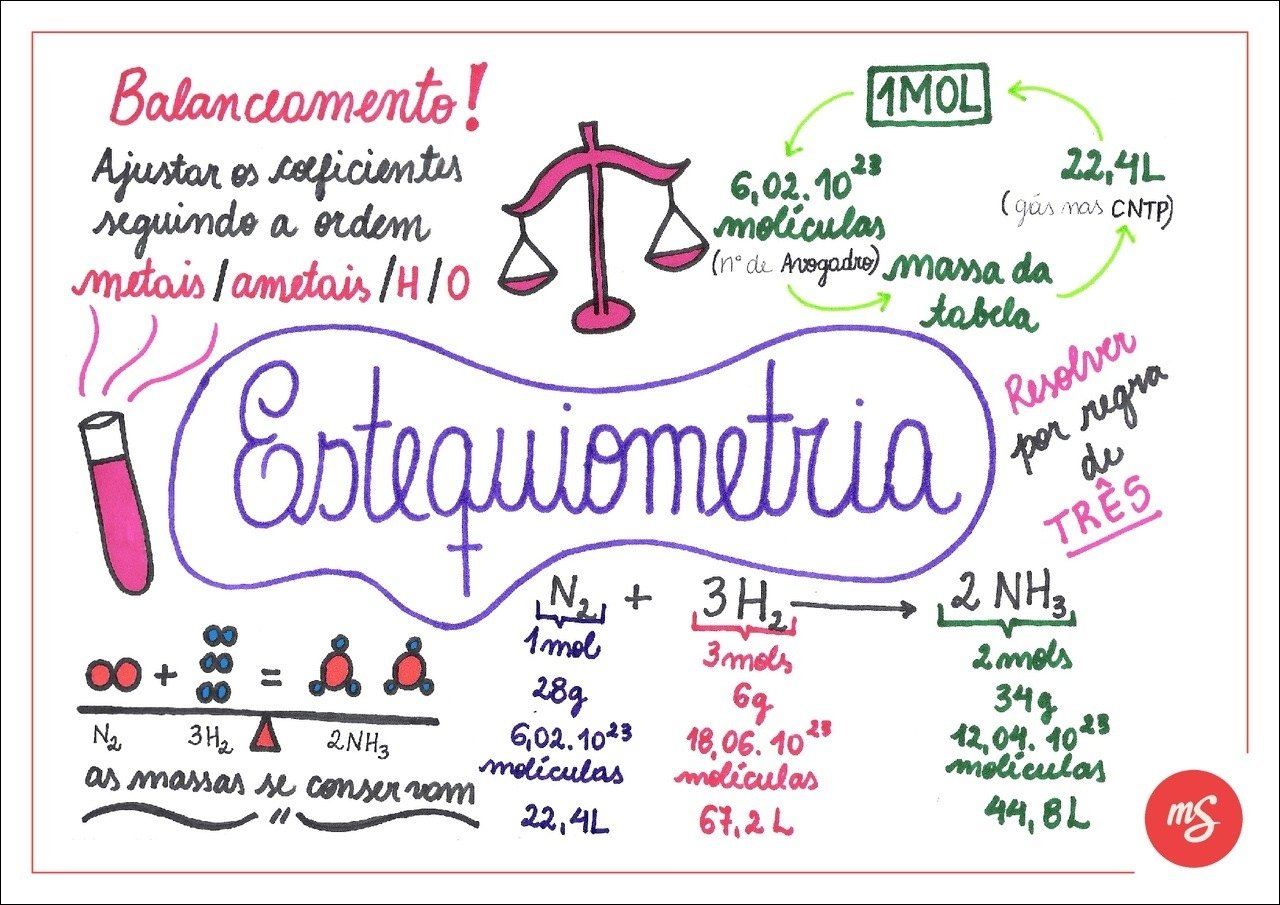 Compilação com os melhores mapas mentais, conceituais, infográficos, diagramas e resumos sobre estequiometria.
