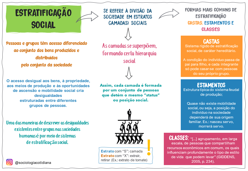 Compilação com os melhores mapas mentais, conceituais, infográficos, diagramas e resumos sobre estratificação social.