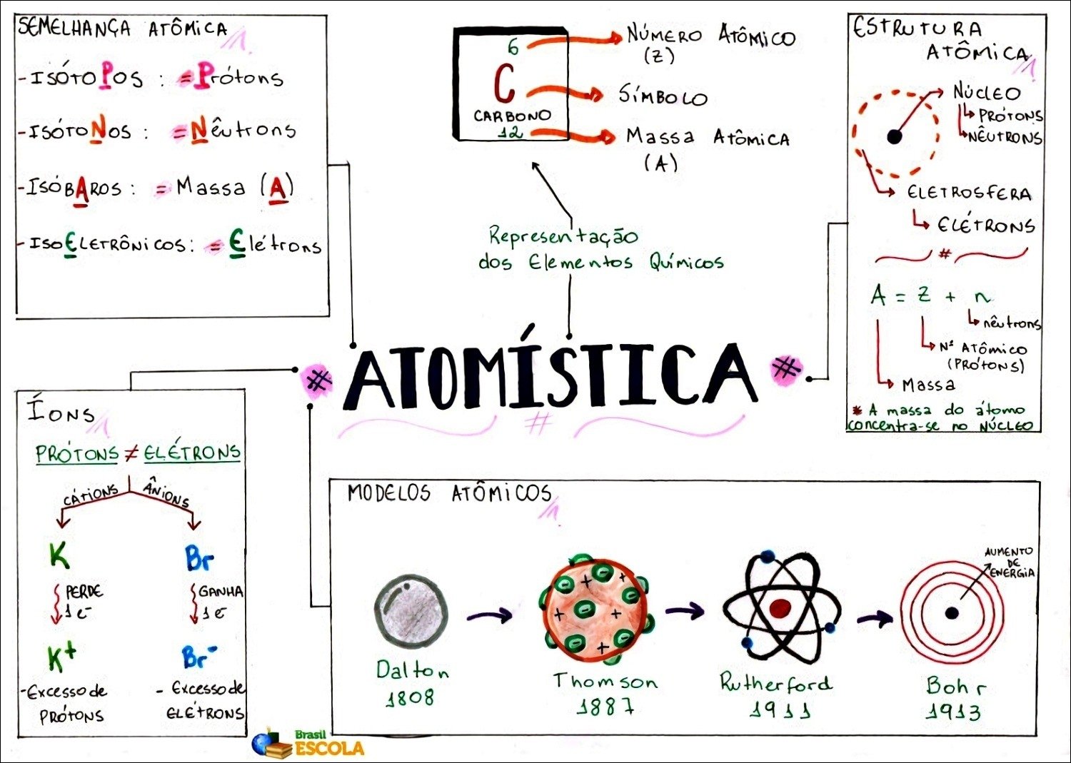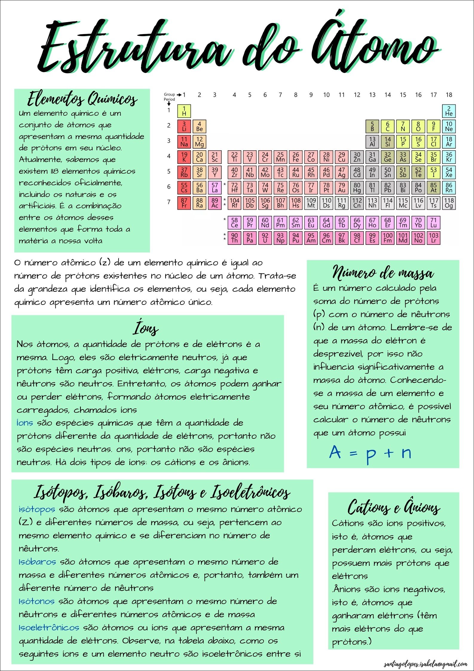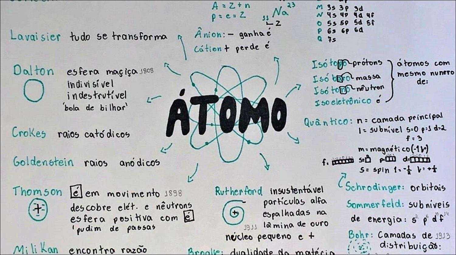 Compilação com os melhores mapas mentais, conceituais, infográficos, diagramas e resumos sobre estrutura atômica.