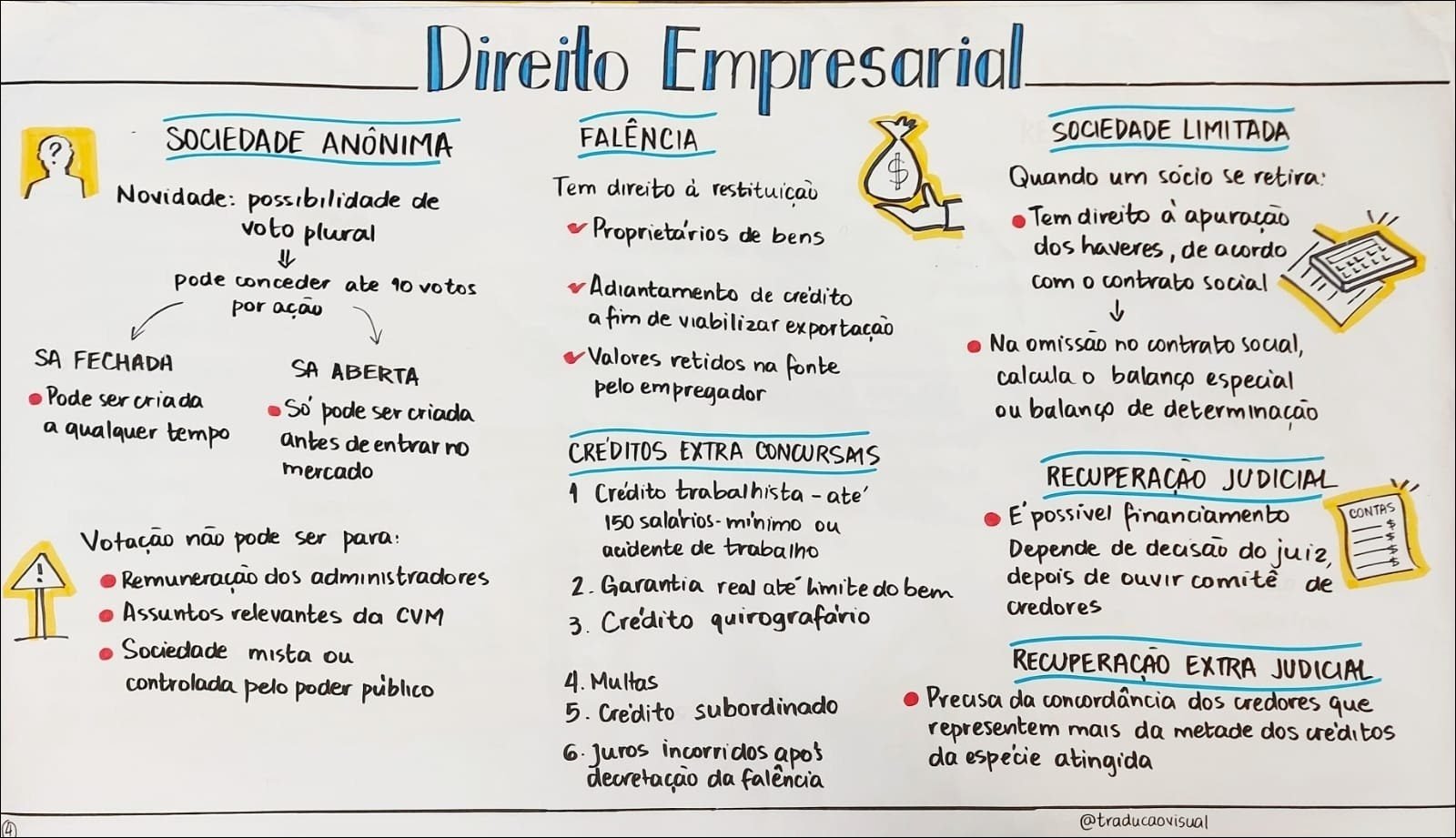 Compilação com os melhores mapas mentais, conceituais, infográficos, diagramas e resumos sobre falência.