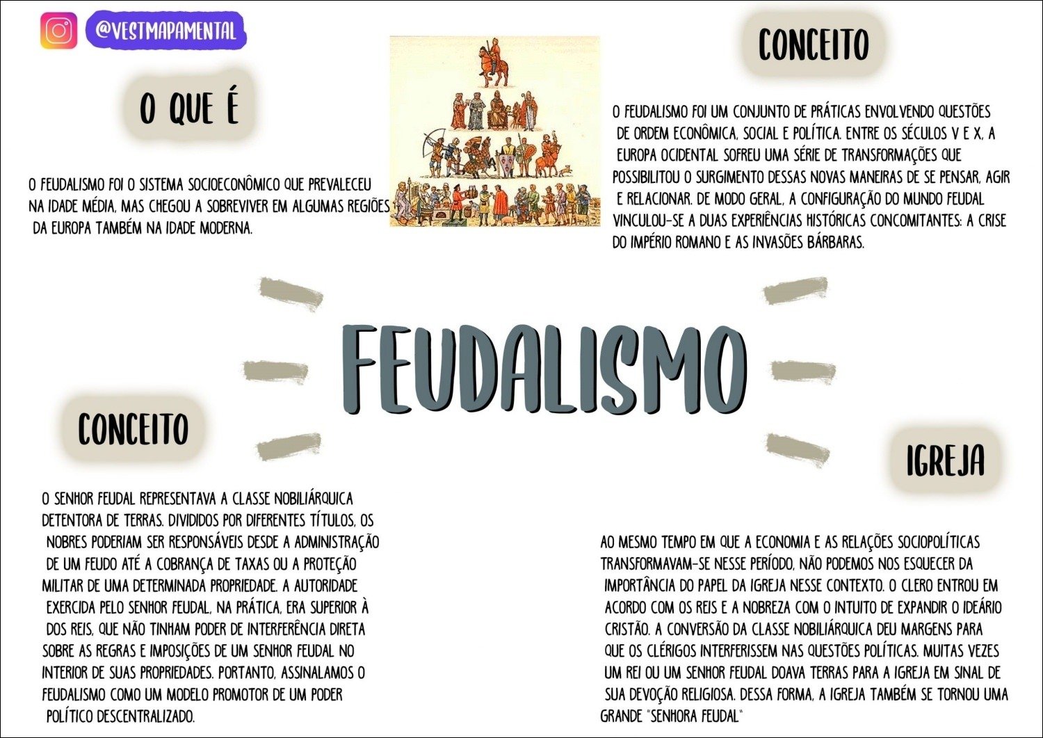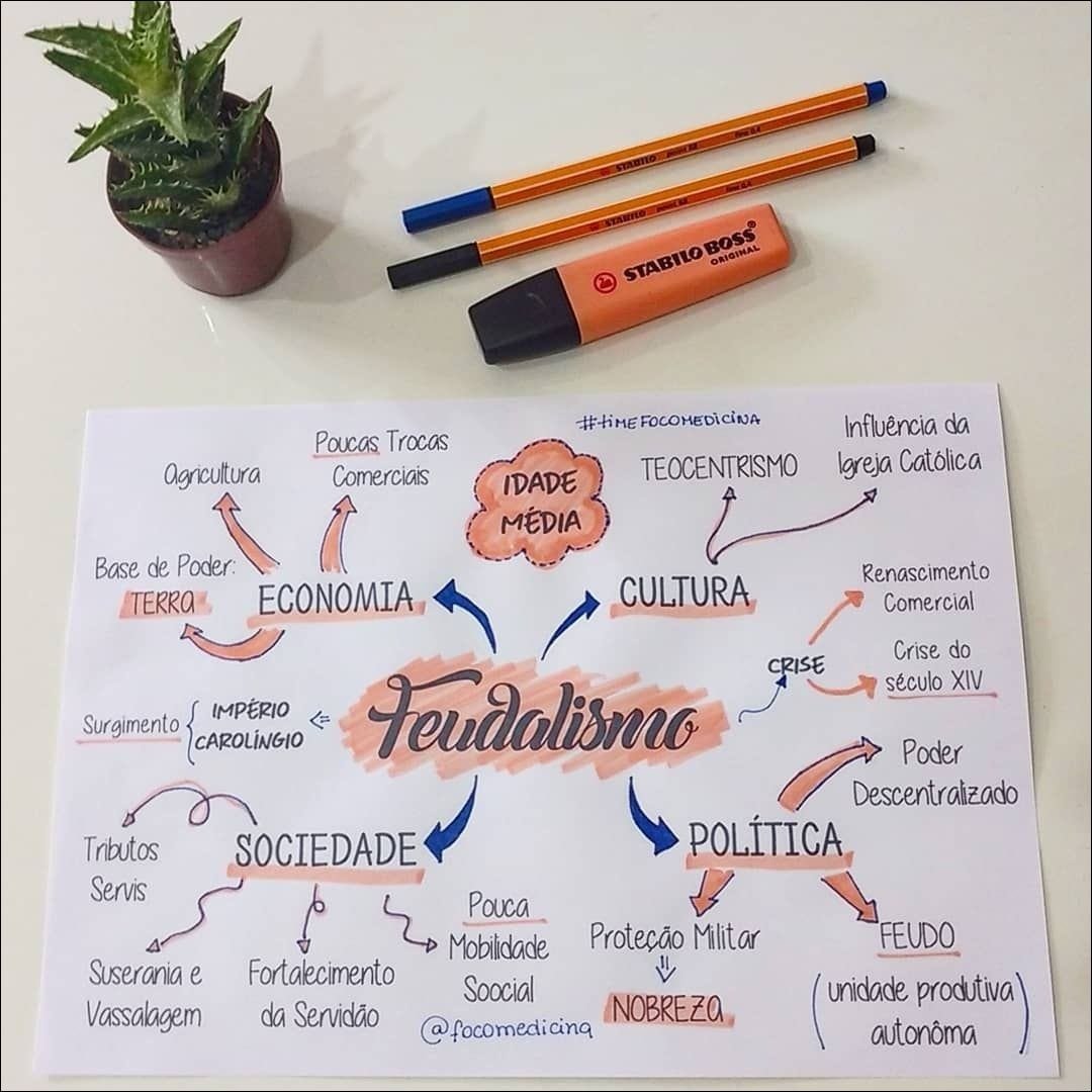 Compilação com os melhores mapas mentais, conceituais, infográficos, diagramas e resumos sobre feudalismo.