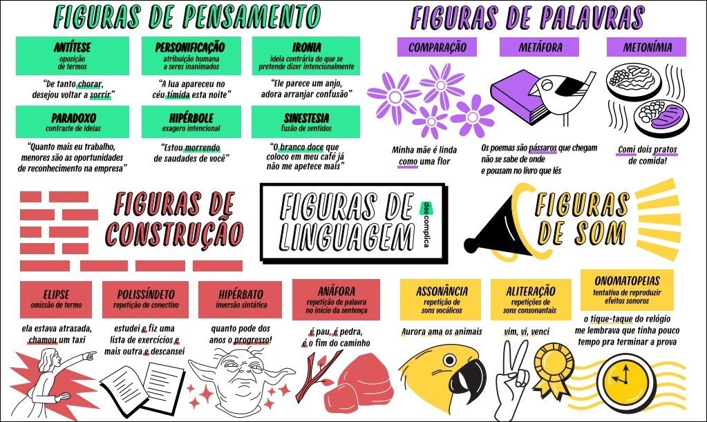 Compilação com os melhores mapas mentais, conceituais, infográficos, diagramas e resumos sobre figuras de palavras.