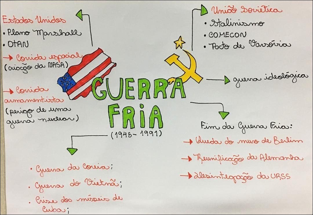 Compilação com os melhores mapas mentais, conceituais, infográficos, diagramas e resumos sobre fim da guerra fria.