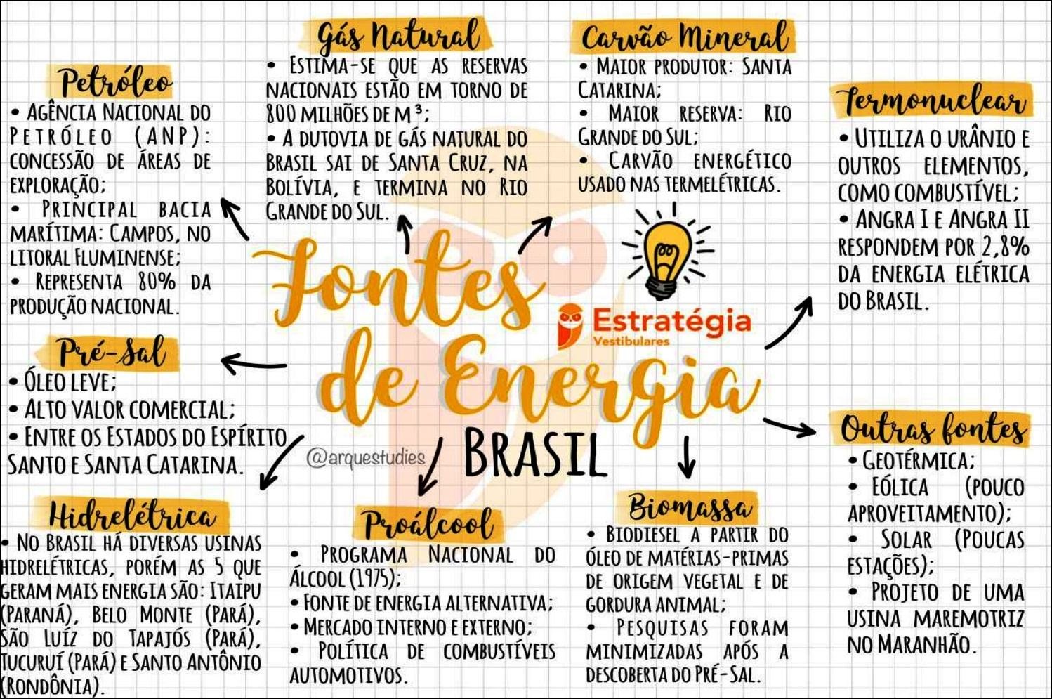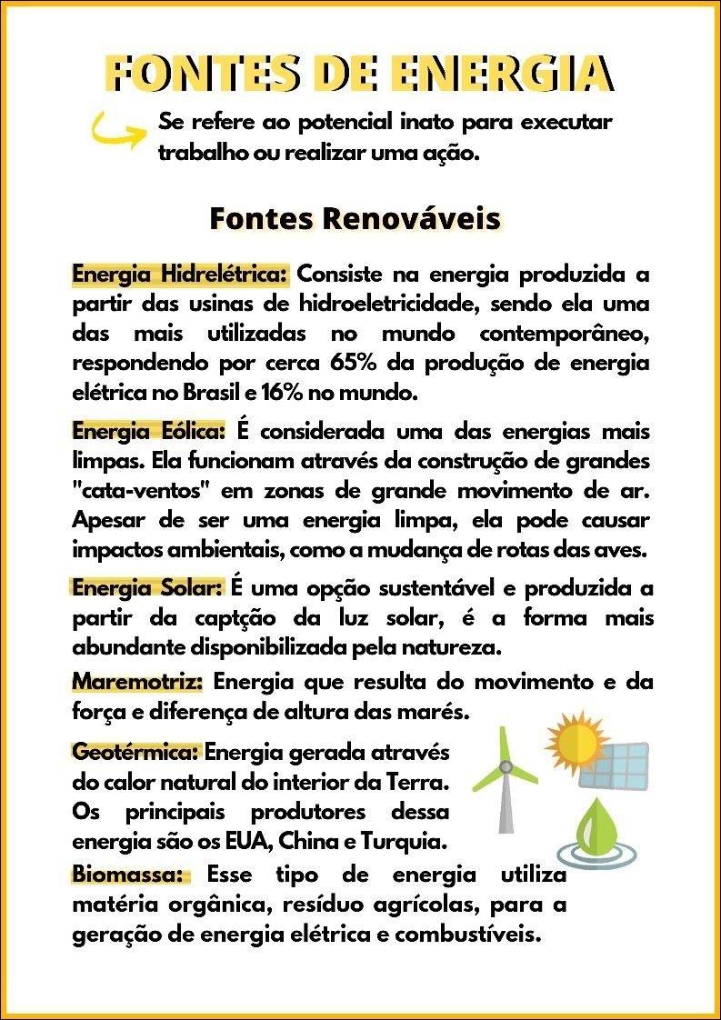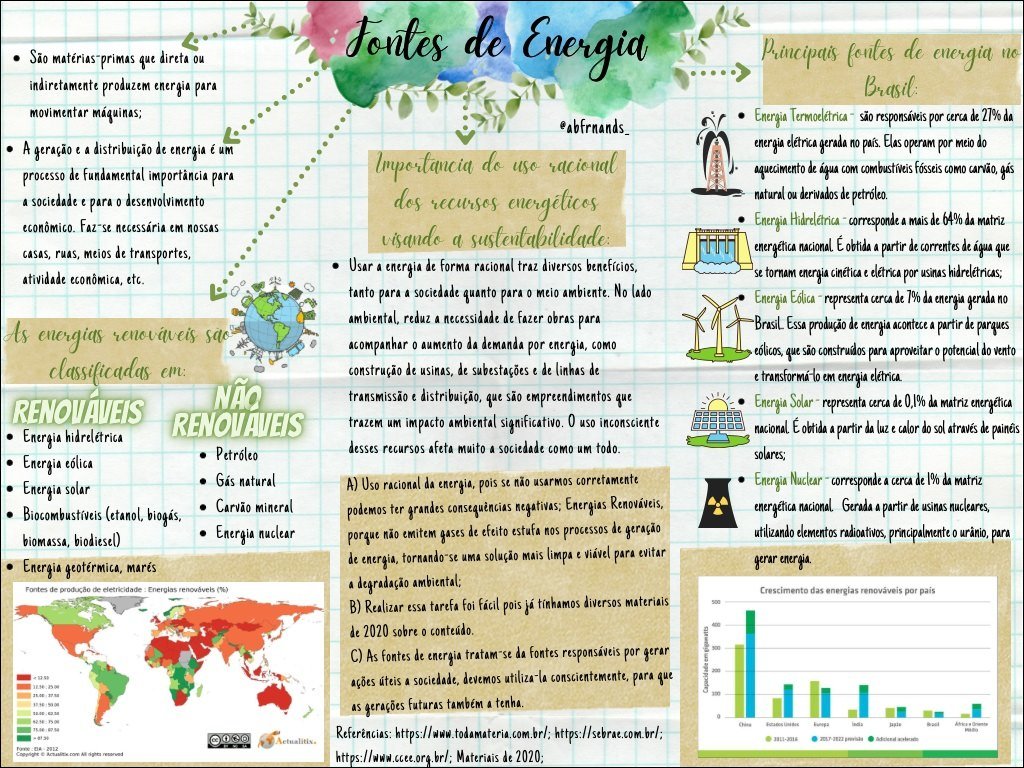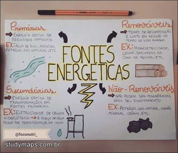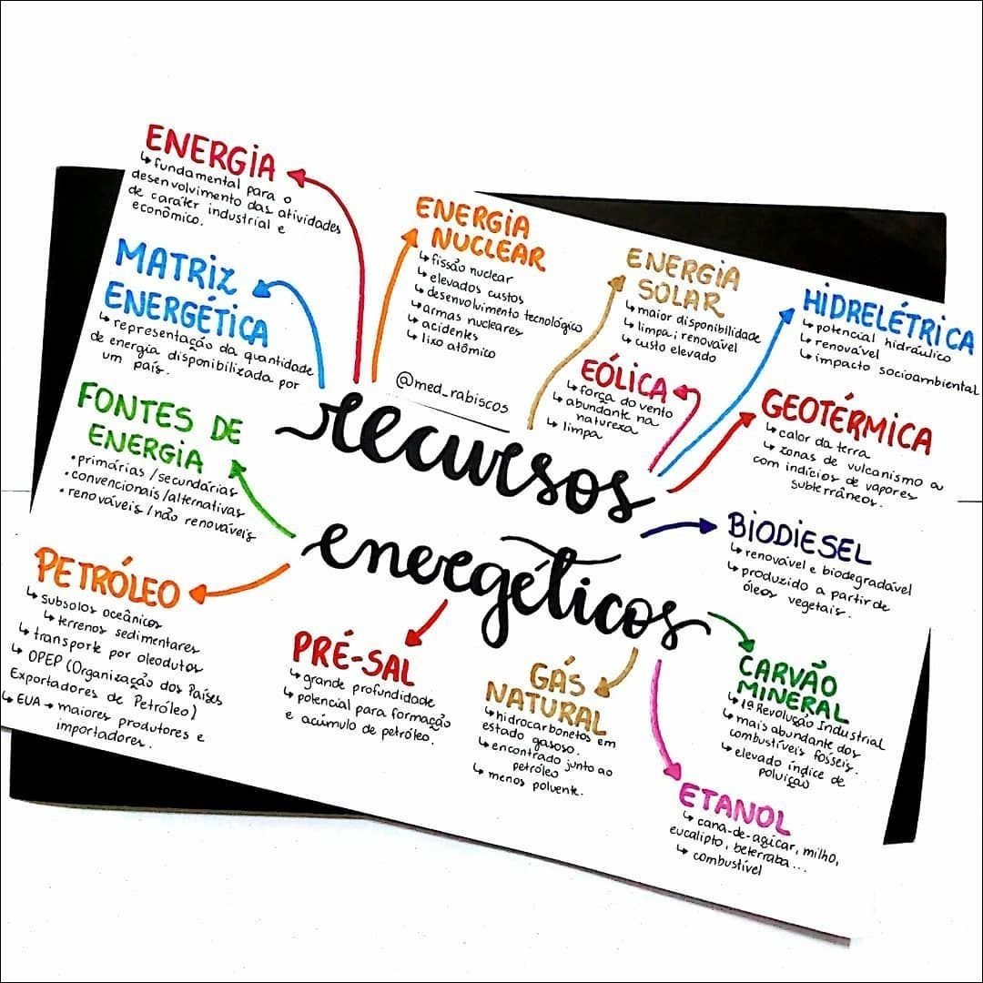 Compilação com os melhores mapas mentais, conceituais, infográficos, diagramas e resumos sobre fontes de energia.