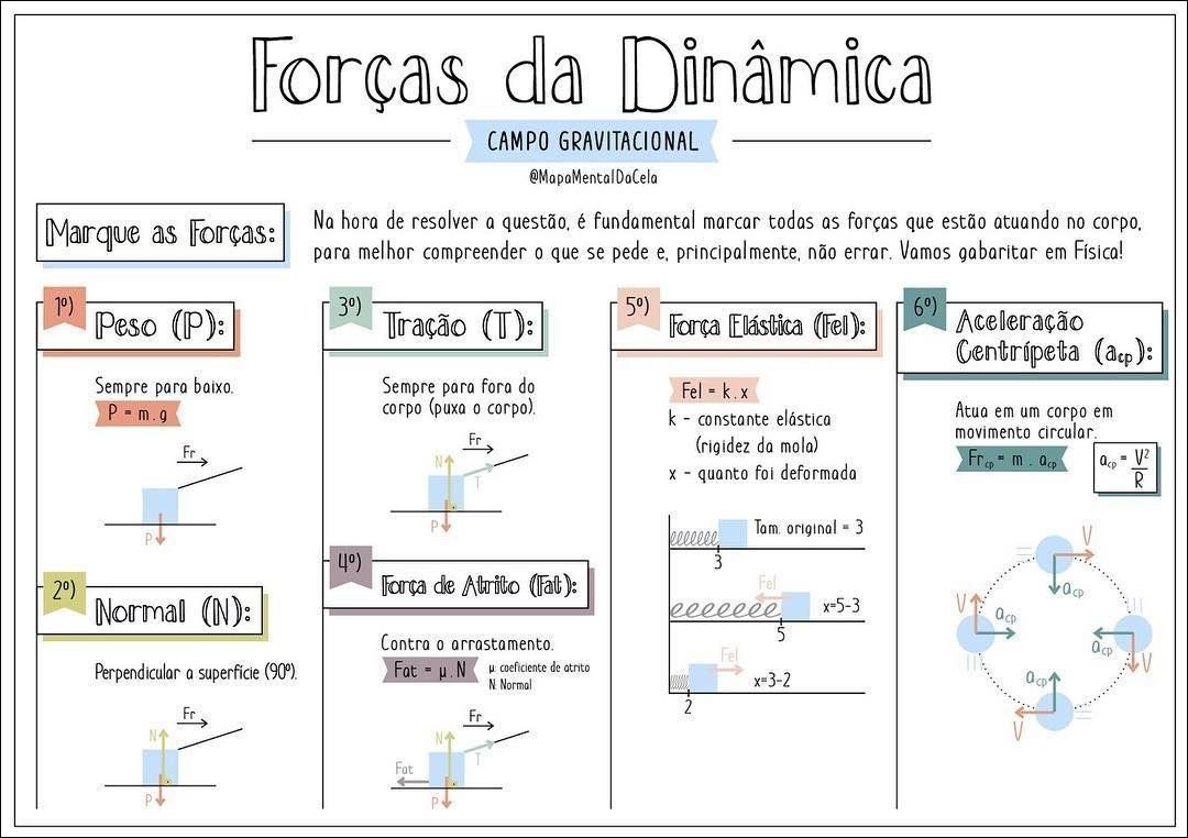 Compilação com os melhores mapas mentais, conceituais, infográficos, diagramas e resumos sobre Força elástica.
