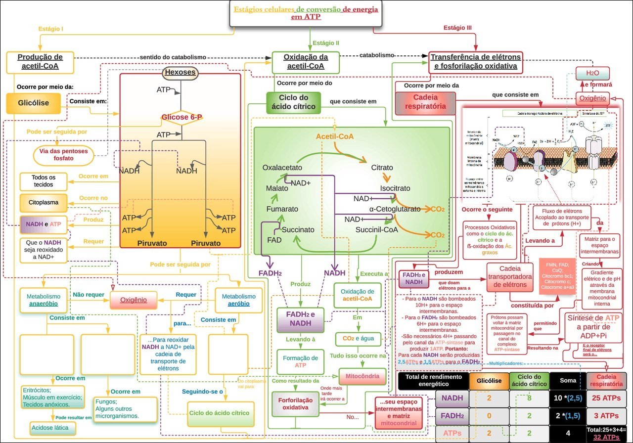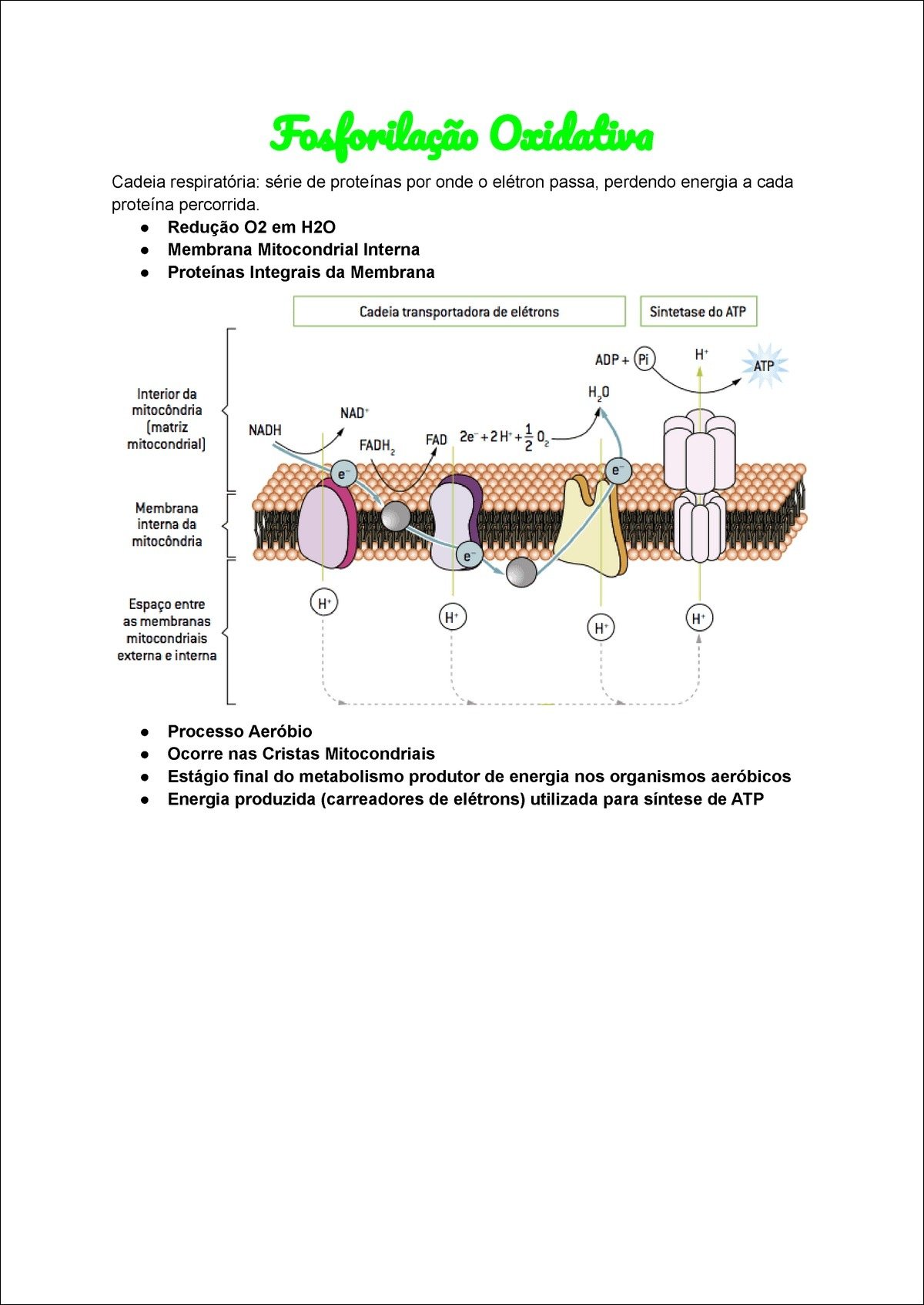 Compilação com os melhores mapas mentais, conceituais, infográficos, diagramas e resumos sobre fosforilação oxidativa.