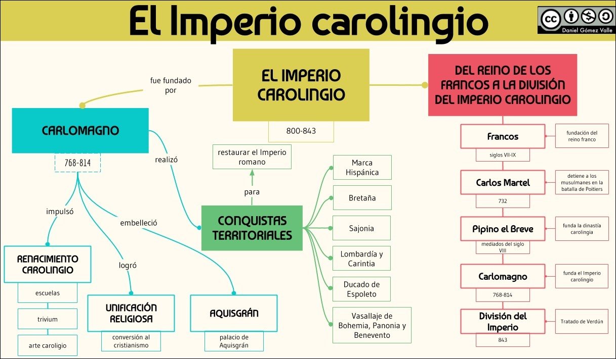 No século VIII, Carlos Martel, um prefeito do palácio, derrotou os muçulmanos na Batalha de Tours, impedindo a sua expansão para a Europa. Seu filho, Pepino, o Breve, depôs o último rei merovíngio e assumiu o trono, fundando a dinastia Carolíngia. O neto de Pepino, Carlos Magno, expandiu ainda mais o reino, conquistando grande parte da Europa Ocidental e sendo coroado Imperador do Sacro Império Romano em 800 d.C. O reinado de Carlos Magno marcou um período de renascimento cultural e político, conhecido como Renascimento Carolíngio. Após sua morte, o vasto império foi dividido entre seus netos, abrindo caminho para a formação dos reinos que eventualmente levariam à França e à Alemanha modernas, mas deixando um legado duradouro na história da Europa.
