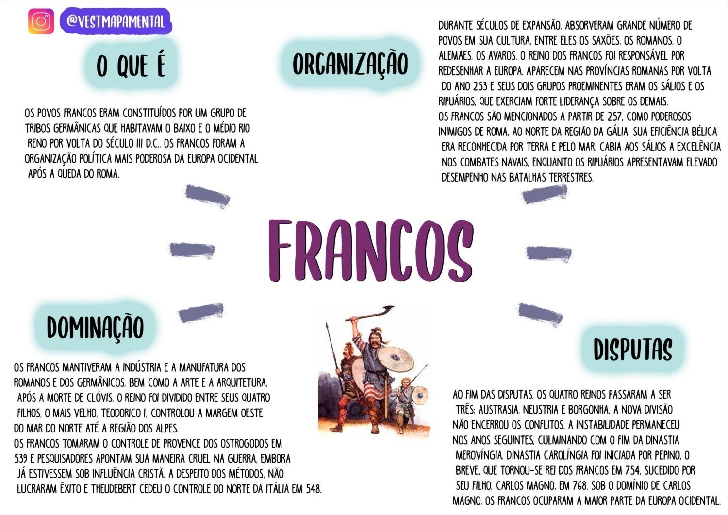 Compilação com os melhores mapas mentais, conceituais, infográficos, diagramas e resumos sobre francos.