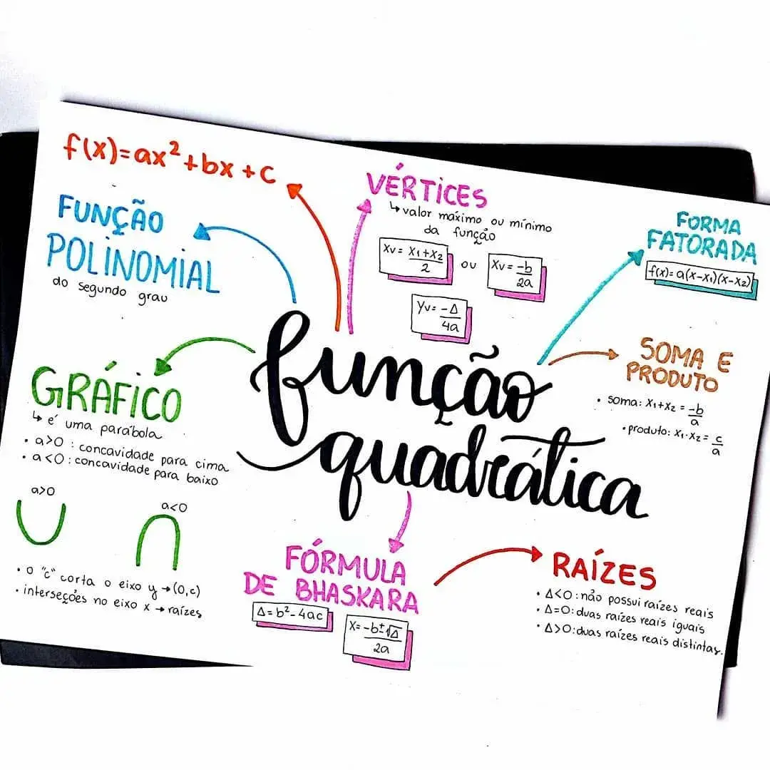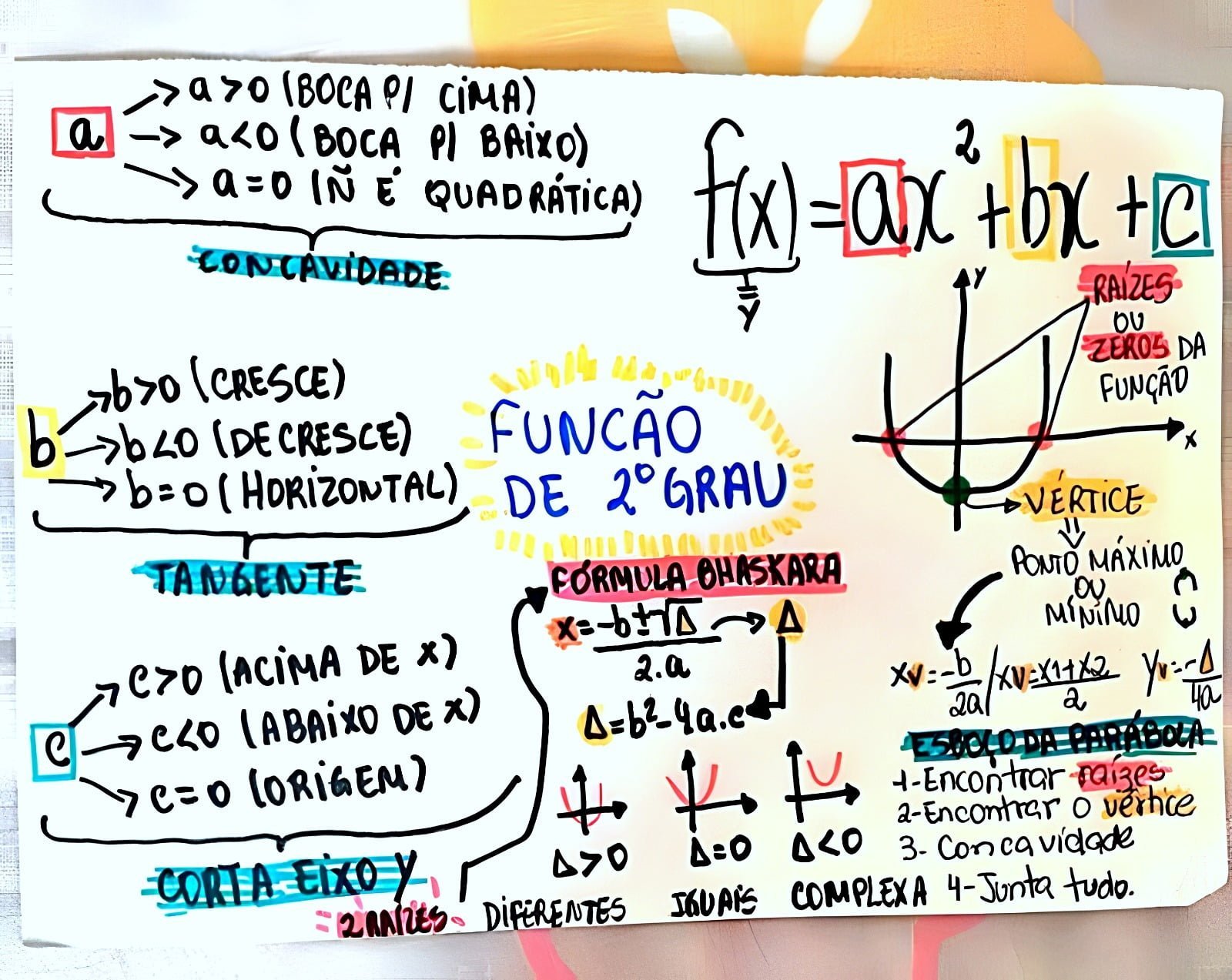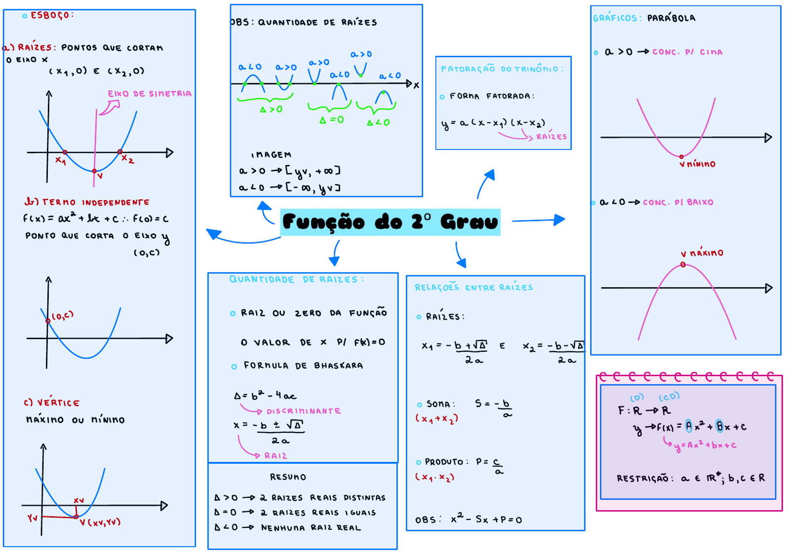 Compilação com os melhores mapas mentais, conceituais, infográficos, diagramas e resumos sobre função de 2º grau.
