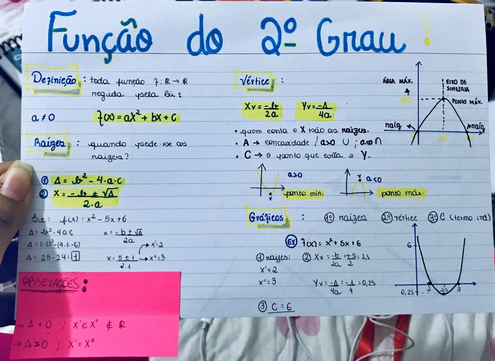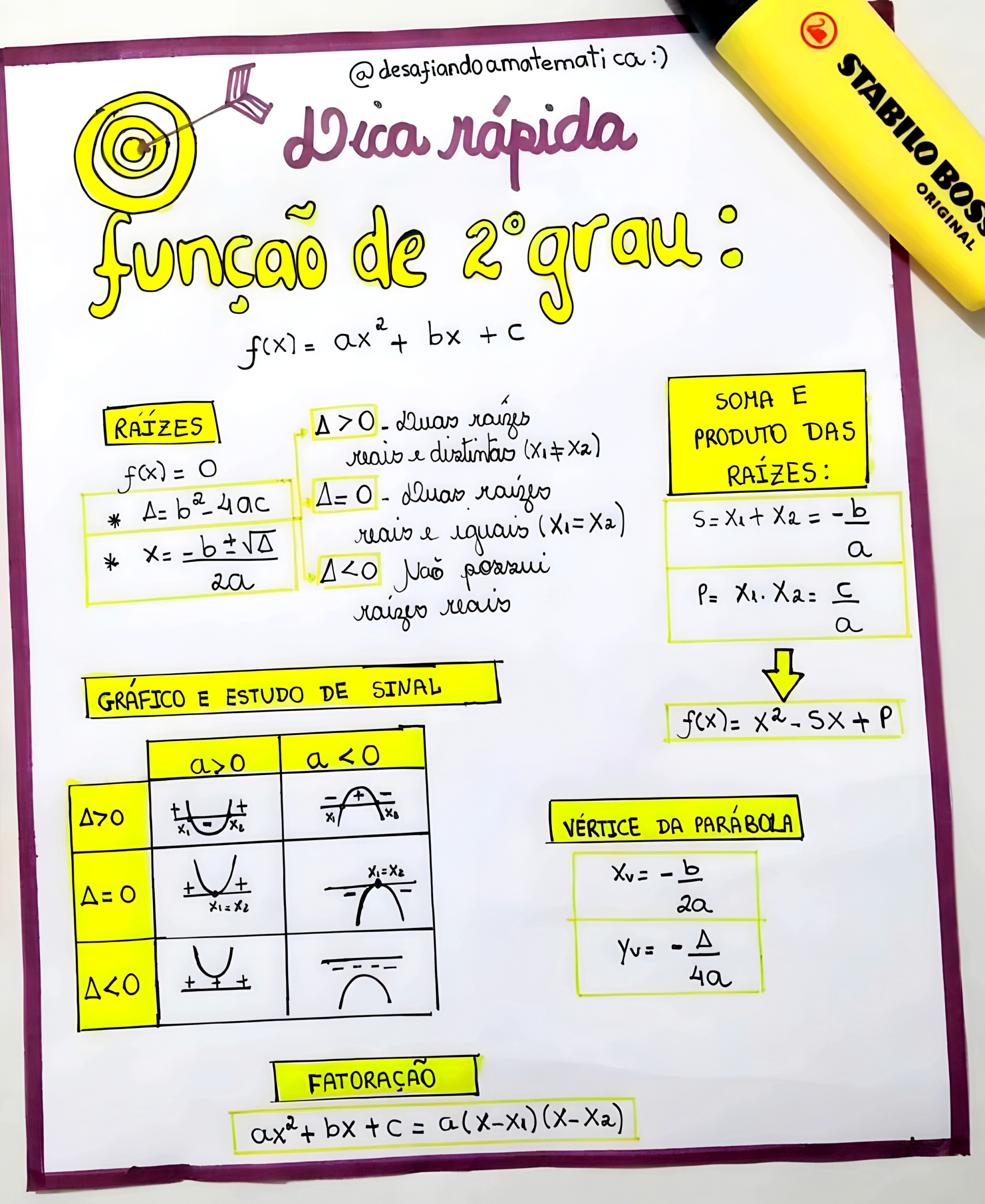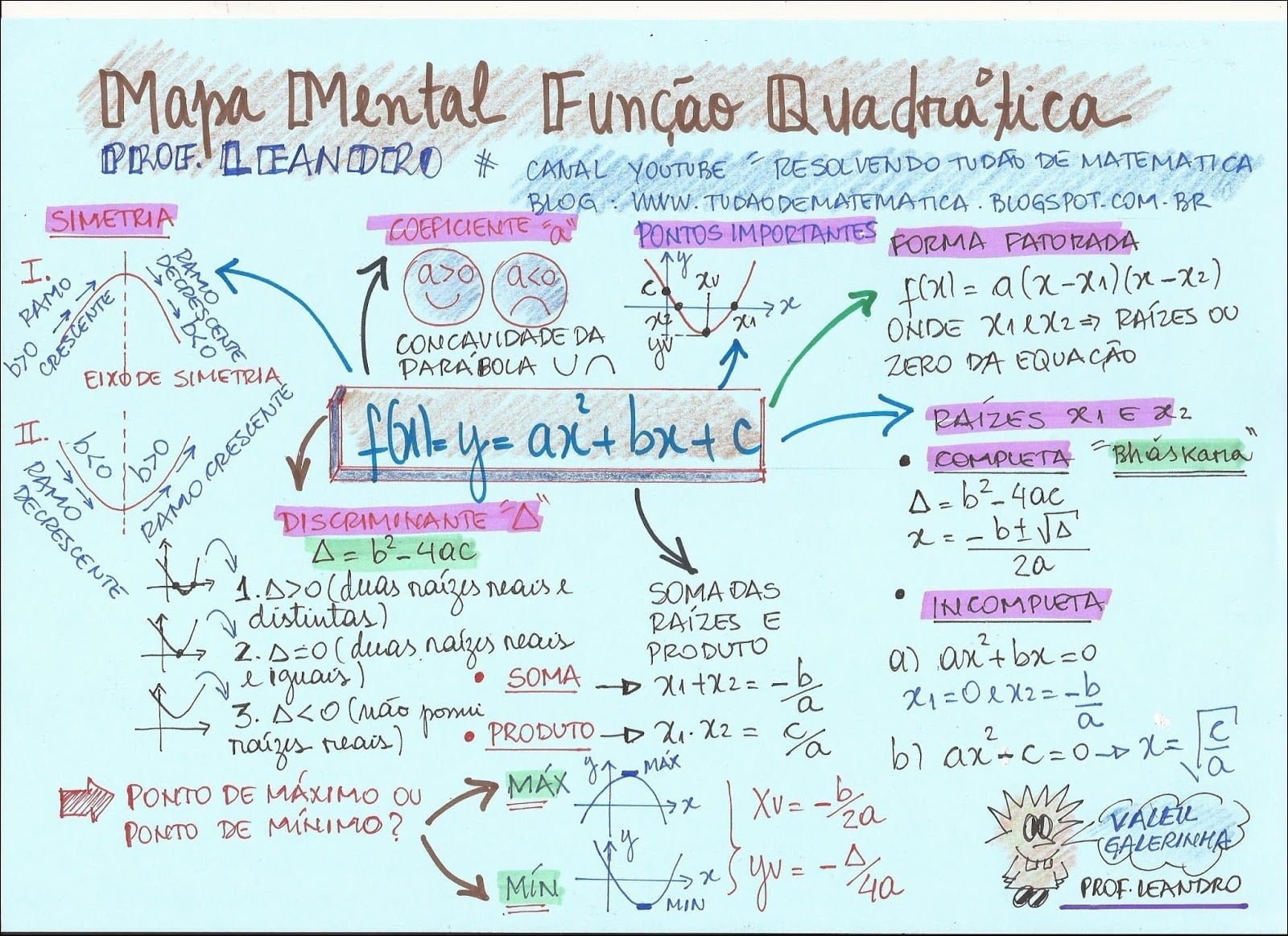 Compilação com os melhores mapas mentais, conceituais, infográficos, diagramas e resumos sobre função de 2º grau.