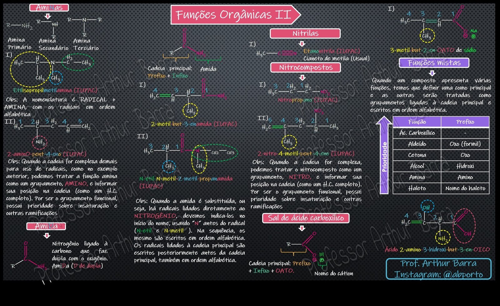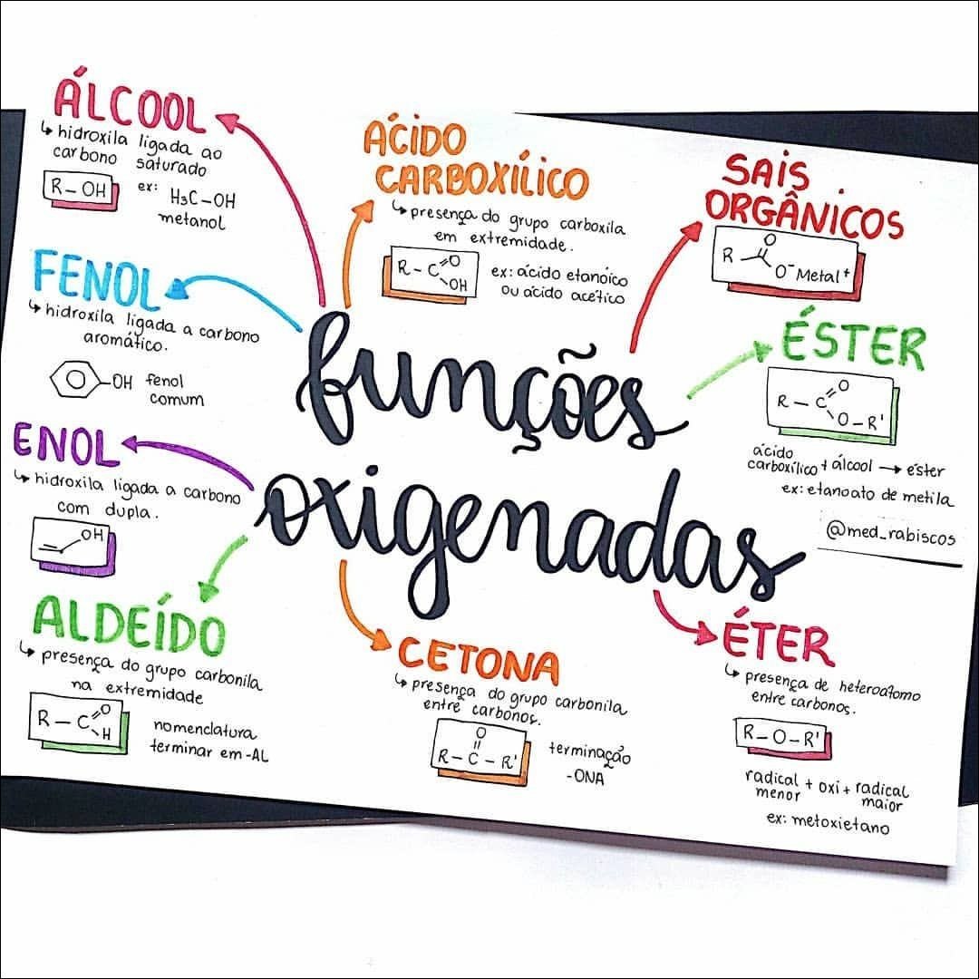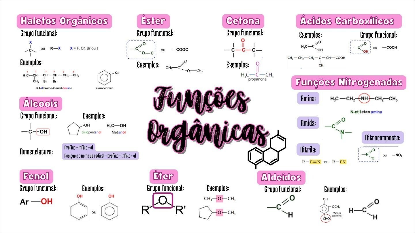 Compilação com os melhores mapas mentais, conceituais, infográficos, diagramas e resumos sobre funções orgânicas.