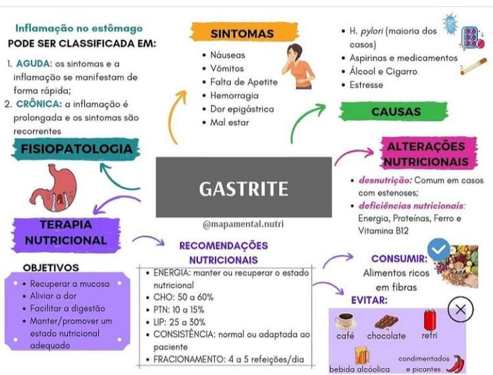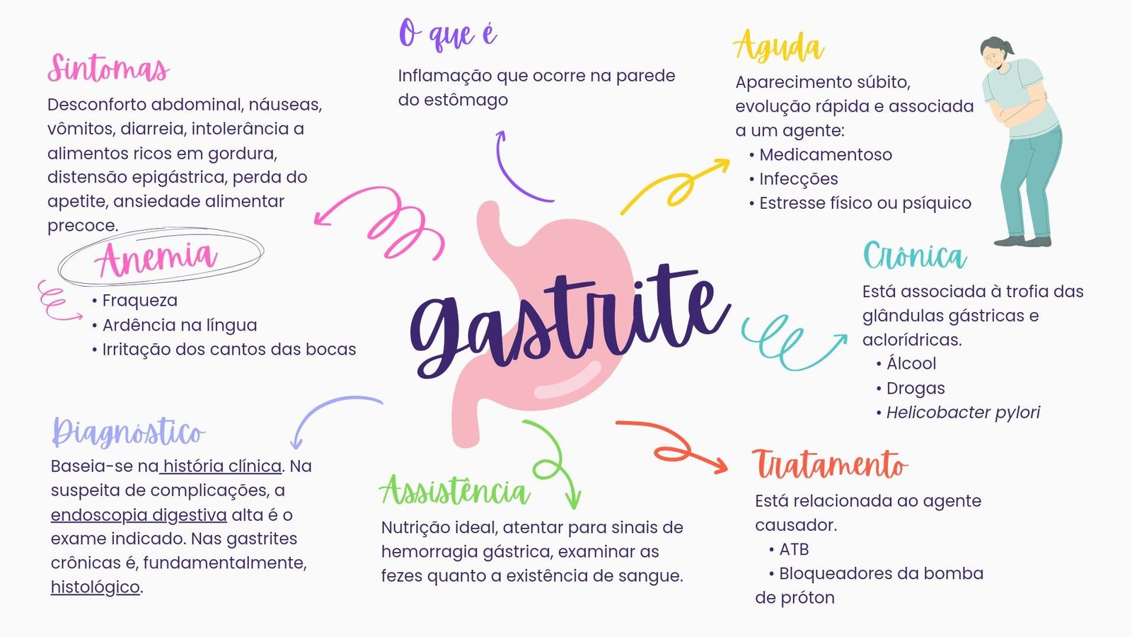 Compilação com os melhores mapas mentais, conceituais, infográficos, diagramas e resumos sobre gastrite.