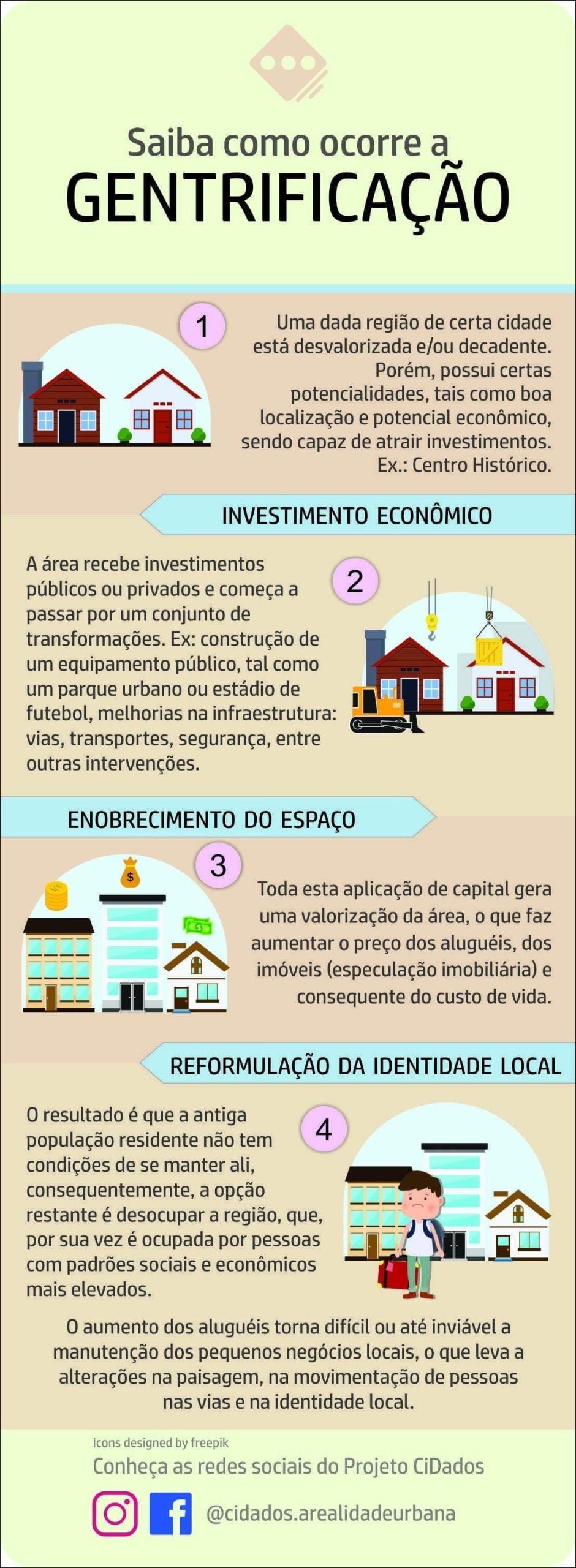 Compilação com os melhores mapas mentais, conceituais, infográficos, diagramas e resumos sobre gentrificação.